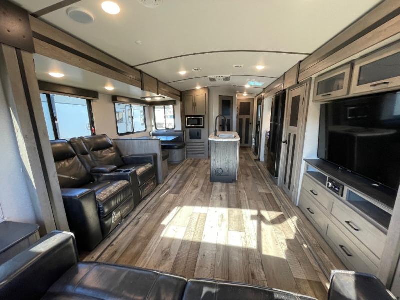 With any Keystone Outback Ultra Lite travel trailer or toy hauler, you will enjoy a beautiful interior that is outfitted with modern style. Some models feature interior sliding barn doors, and all models have extra-tall slide height for more head space. You can extend your camping season thanks to the one-piece polypropylene heated, enclosed underbelly, the 15K BTU A/C with true Race Track ducting, and the upgraded 10-cubic foot 12V gas/electric refrigerator. Some other notable features are the fully walkable 3/8" roof decking and one-piece TPO membrane, the HyperDeck flooring, and the outside shower. These are just a few of the reasons you will want to own an Outback Ultra Lite to explore the outdoors!