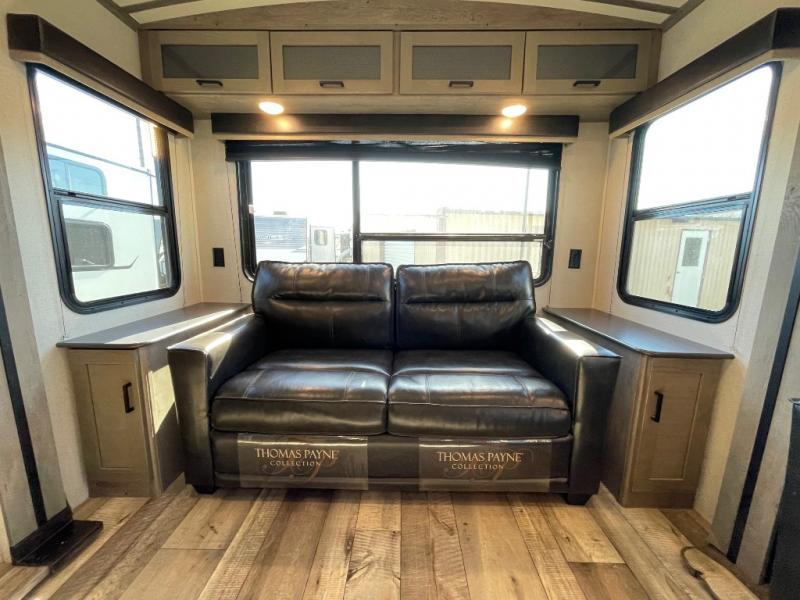 Whether you like to camp at a state park or RV resort, this Outback Ultra Lite trailer will provide inside comforts to relax and unwind after hiking or working all week. You can choose to sit on the theater seats, the sofa sleeper, or the booth dinette and watch the 50" TV. You can also relax outdoors protected from the elements under the 21' awning. The cook will love having the kitchen island to prepare and serve meals, and they will also love all of the appliances as well as the curio and pull-out trash can. The double-entry bath is convenient for all, and the private front bedroom will allow you to get a good night's sleep on your own queen bed. Your family pet will also have their own space with the built-in kennel.