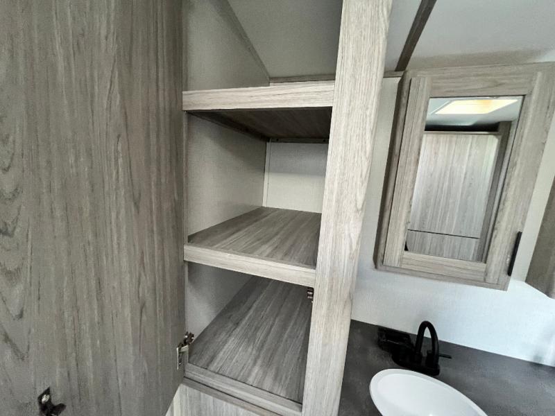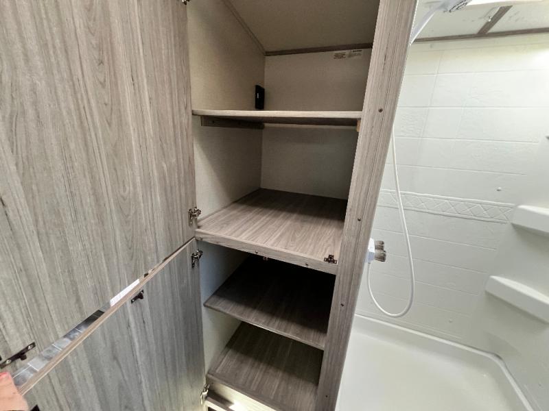 As you peek through this Passport travel trailer, you'll find more to love the more that you look! Keystone has included thoughtful features that will enhance your camping experience. Some of these features include the flip-up countertop in the kitchen and the pull-out storage drawer at the entertainment center. The rear bathroom is extremely accommodating with its dual-sink vanity, linen closet, and closet prepped for a washer/dryer, and out in the main living area, there is extra living space when you put the large slide into place. You can also choose to add an optional fireplace to make the interior cozy and inviting.