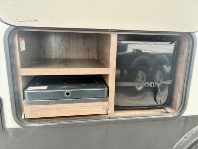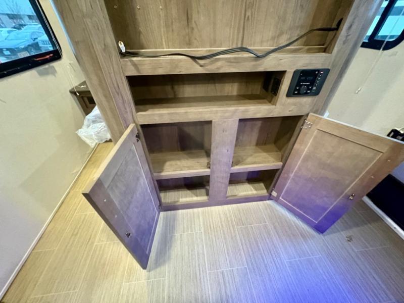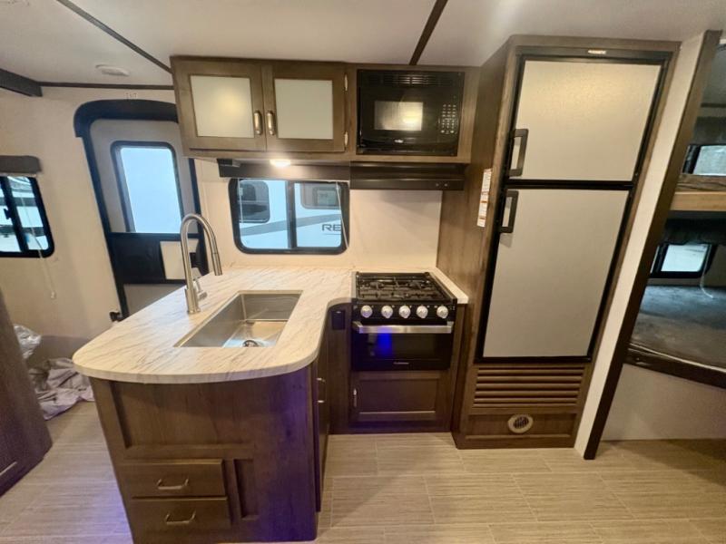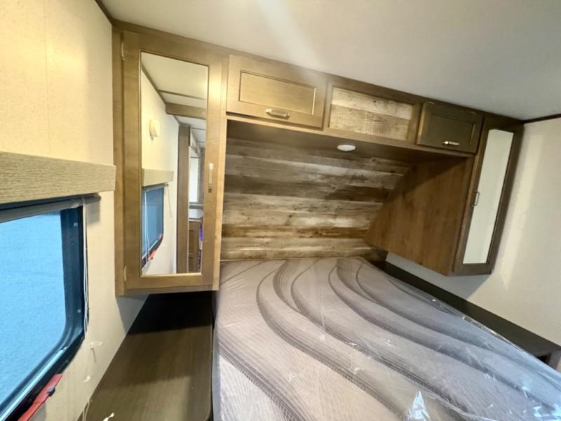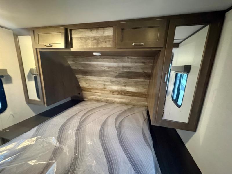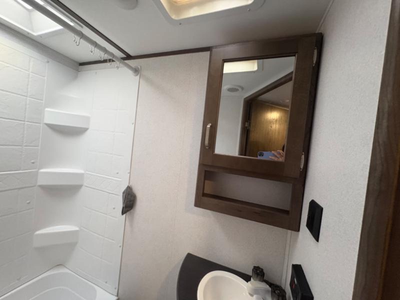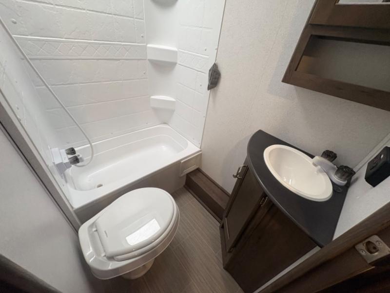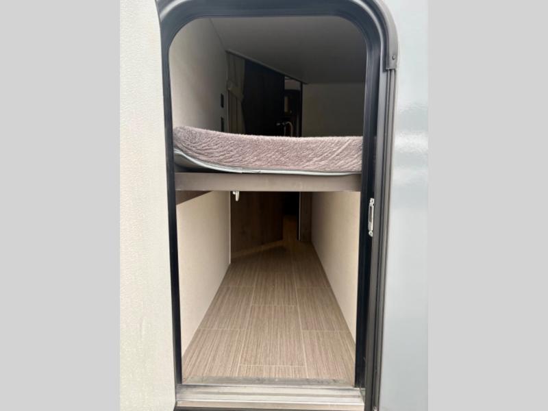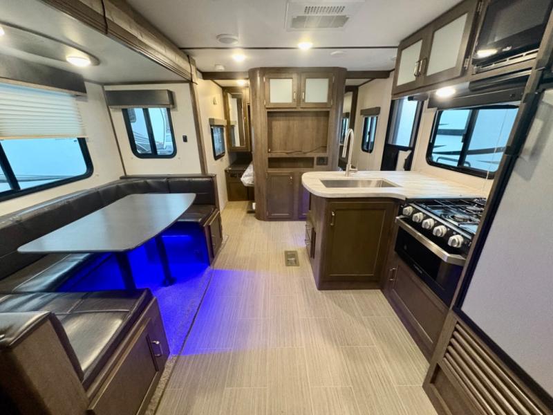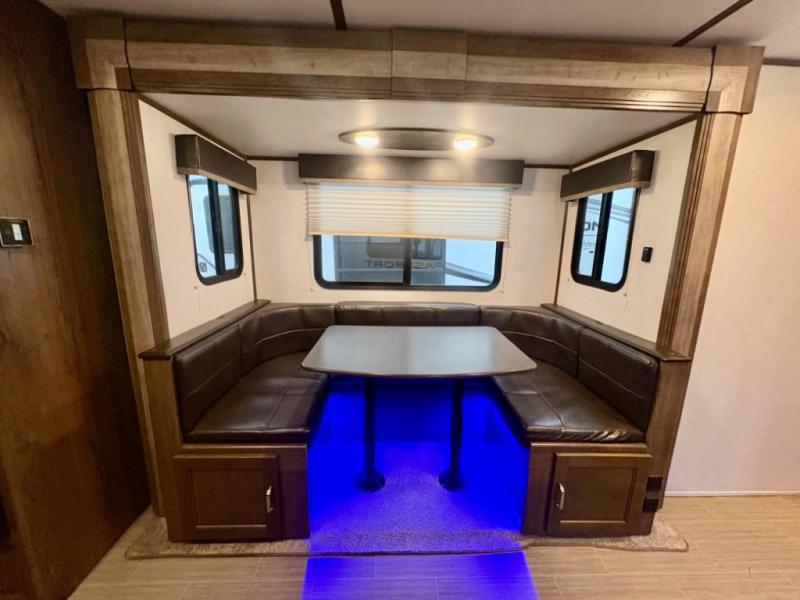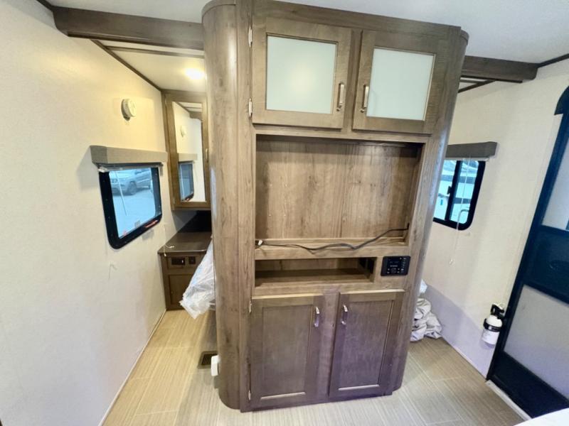 If you have decided to upgrade your RV, this Passport travel trailer is the ticket! You will find comfortable bedding in the private bedroom for yourself and double-size bunks for the kids on the opposite side of the trailer. If extra friends tag along, the U-shaped dinette slide provides additional sleeping space for one to two campers, as well as floor space for everyone. The chef can choose between the inside appliances and the outside kitchen to make meals, and there is a full bathroom conveniently next to the bunks. Step inside to see how roomy and comfortable this Passport will be for you and your family for years to come.