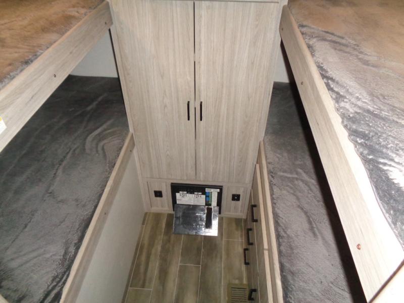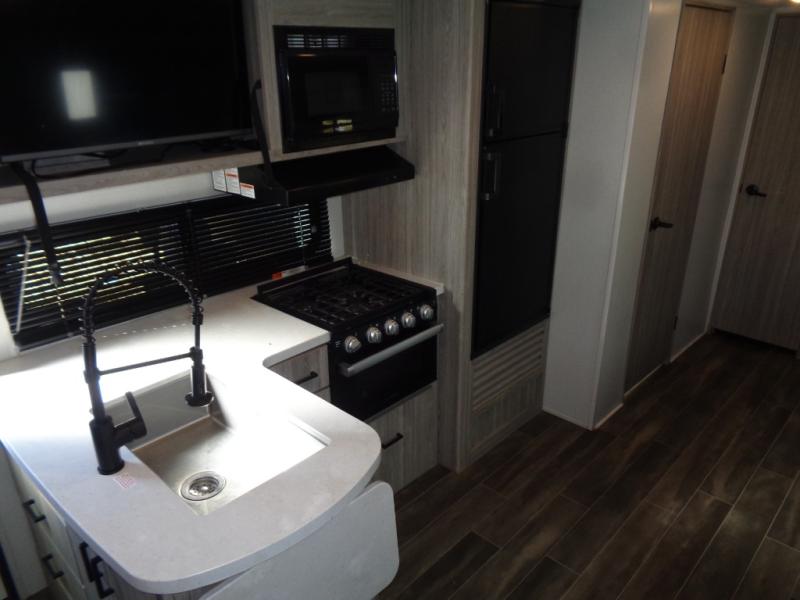 The Passport SL Series travel trailers by Keystone RV come in a compact design with travel-friendly lengths that are lightweight and easy to tow behind many smaller crossover SUVs. You will find several residential-style features such as durable Armstrong vinyl flooring, upgraded window treatments and valances, and bathroom countertops. The exterior shower with hot and cold water is very useful as you get cleaned up before entering the RV, wash your pets, or even rinse a few dishes outside. The Passport also now contains a HyperDeck flooring system which is a high-performance, water-resistant RV floor that comes as a breakthrough design from the Keystone Innovation Lab. This flooring is more resilient, stronger, and lighter than traditional laminated wood construction. Choose your favorite Passport SL Series today, and start going everywhere!