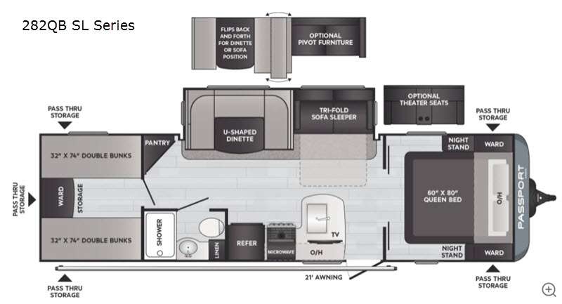 Keystone Passport travel trailer 282QB SL Series highlights: