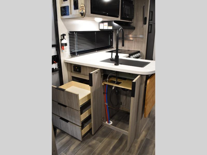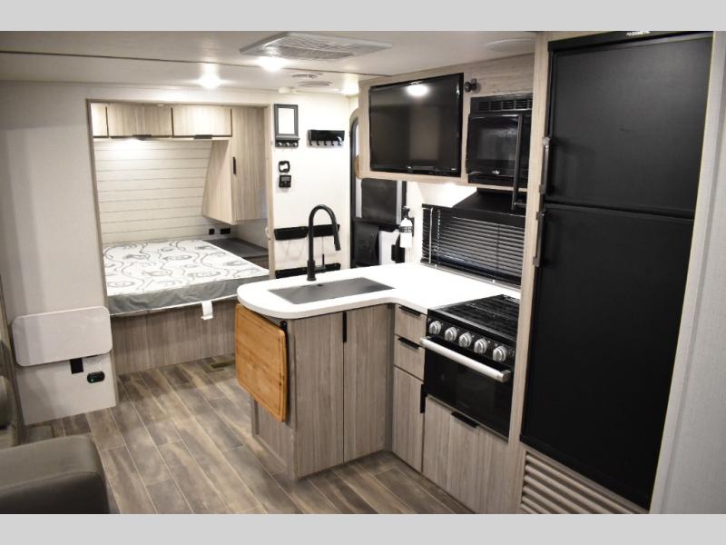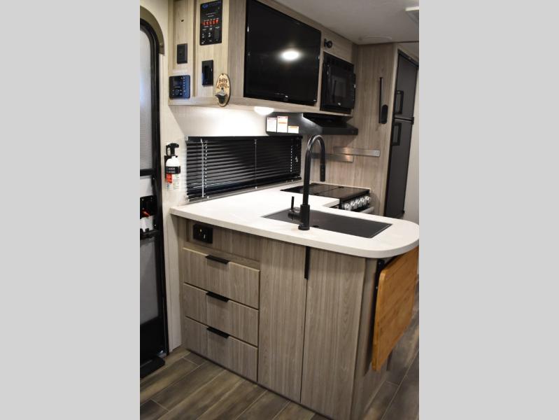 The Passport SL Series travel trailers by Keystone RV come in a compact design with travel-friendly lengths that are lightweight and easy to tow behind many smaller crossover SUVs. You will find several residential-style features such as durable Armstrong vinyl flooring, upgraded window treatments and valances, and bathroom countertops. The exterior shower with hot and cold water is very useful as you get cleaned up before entering the RV, wash your pets, or even rinse a few dishes outside. The Passport also now contains a HyperDeck flooring system which is a high-performance, water-resistant RV floor that comes as a breakthrough design from the Keystone Innovation Lab. This flooring is more resilient, stronger, and lighter than traditional laminated wood construction. Choose your favorite Passport SL Series today, and start going everywhere!