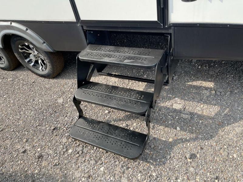 This Passport SL travel trailer has a functional interior that allows you to have lots of sleeping space without taking up too much interior space! The double size bunks can accommodate travel gear when you use the exterior rear cargo door with the flip up bunk. The Murphy bed can be pushed out of the way to reveal a sofa for afternoon lounging, and the booth dinette can also transform from a dining area into a sleeping area. Outside, you'll enjoy cooking some burgers at the outdoor kitchen while you stay protected underneath the 15' awning, and the pass-through storage is going to allow you to bring some extra equipment.
