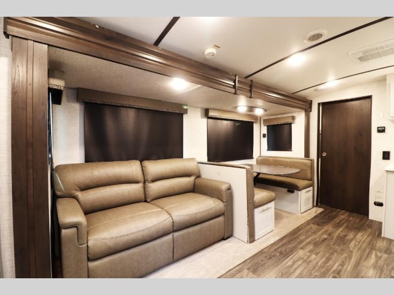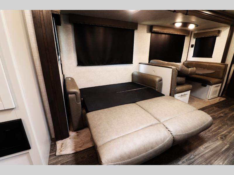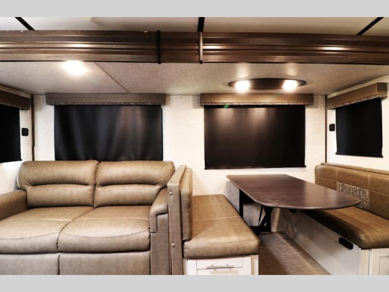 U-Shaped Dinette & Tri-Fold Sofa Slide-Out – increases living space and doubles as additional sleeping areas