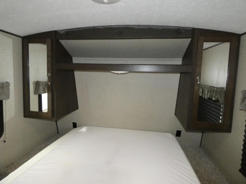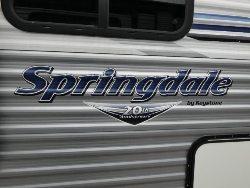 Check out this accommodating Springdale by Keystone! This trailer features a comfortable walk-around queen bed in the front with plenty of wardrobe space and a privacy curtain for you to dress for any occasion. There is also an exterior pass-through storage for you to easily access and keep your camping gear or other necessities.