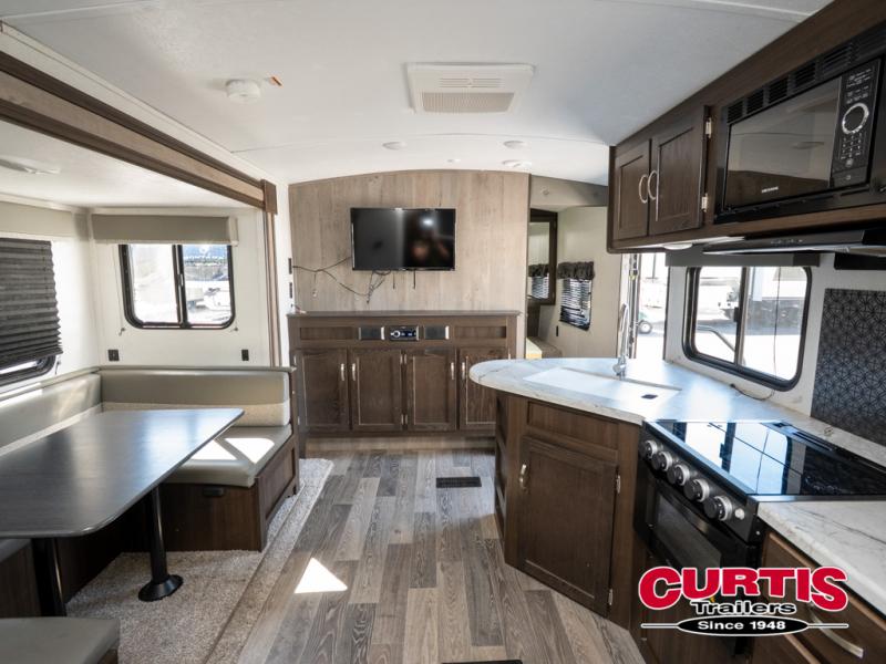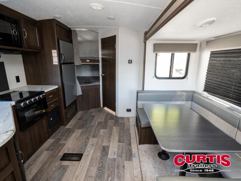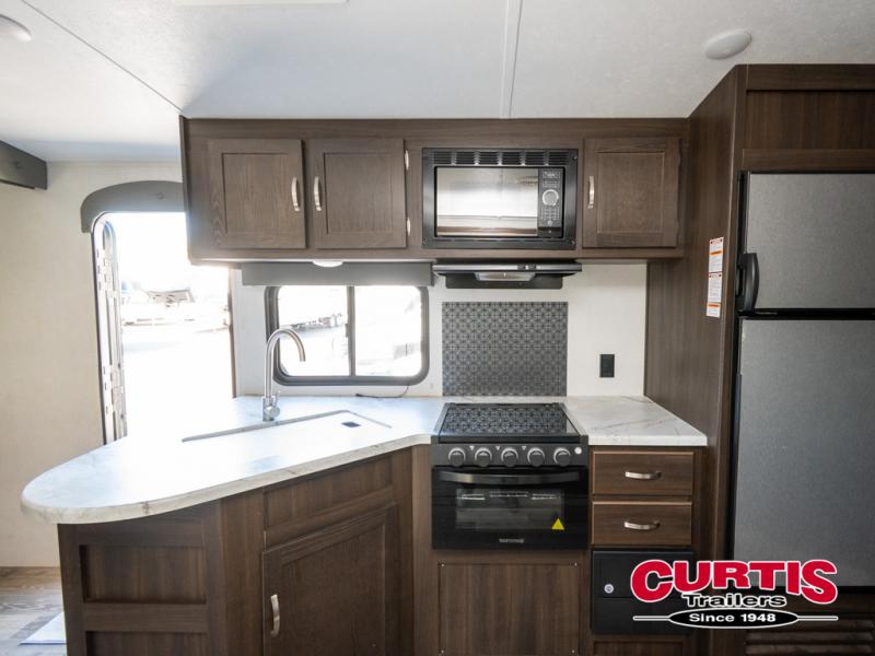 You will love traveling with this Springdale in tow with your family and friends! There is a private front bedroom with a queen bed and storage, a U-shaped dinette slide for eating meals at and sleeping at night, as well as a set of double-size bunks giving you sleeping space for eight. Outside, you can make meals using the outdoor kitchen, relax under the 18' power awning, and store your camping gear in the pass-through compartment. If you need a little bit more help to create dinner, you can head back inside where you will find a three-burner range with glass top in the full interior kitchen.