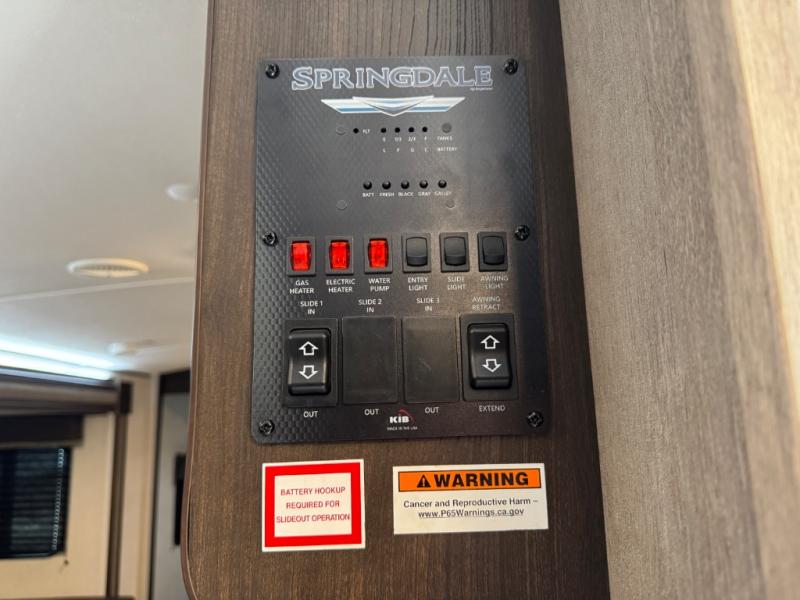 With any Keystone Springdale travel trailer, fifth wheel and destination trailer, you will appreciate the 12V color-coded wiring with easy-to-trace circuits which is better than conventional RV wiring allowing a faster diagnosis for quicker repairs. Also included, the Blade high performance air flow system that delivers 30% more air flow and the streamlined heat distribution that uses in-floor heat vents for more efficiency for uninterrupted air flow. Some exterior features include the LCl SolidStep for a sturdy entrance, the pass-through storage compartment for larger outdoor gear, and Dexter E-Z Lube axles. The interior offers designer upholstered window valances, pressed kitchen countertops, and much more depending on the Springdale you choose.