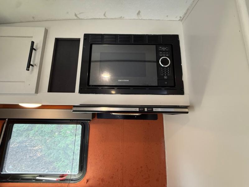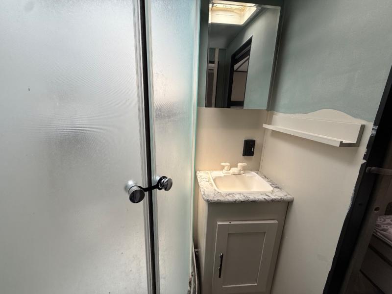 The rear kitchen in this Springdale travel trailer is great because of the U-shaped countertop which gives you plenty of room for prepping your meals and cleaning up as well as all the appliances and the pantry. There are a few seating choices throughout where you can relax, play games, or eat meals, like the two recliners with a table in between to place your drinks and keys, the sofa, and the booth dinette. The private master bedroom up front has a queen bed which is perfect for a good night's rest, and storage on each side plus above the head of the bed.