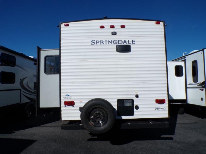 With any Keystone Springdale travel trailer, fifth wheel and destination trailer, you will appreciate the 12V color-coded wiring with easy-to-trace circuits which is better than conventional RV wiring allowing a faster diagnosis for quicker repairs. Also included, the Blade high performance air flow system that delivers 30% more air flow and the streamlined heat distribution that uses in-floor heat vents for more efficiency for uninterrupted air flow. Some exterior features include the LCl SolidStep for a sturdy entrance, the pass-through storage compartment for larger outdoor gear, and Dexter E-Z Lube axles. The interior offers designer upholstered window valances, pressed kitchen countertops, and much more depending on the Springdale you choose.