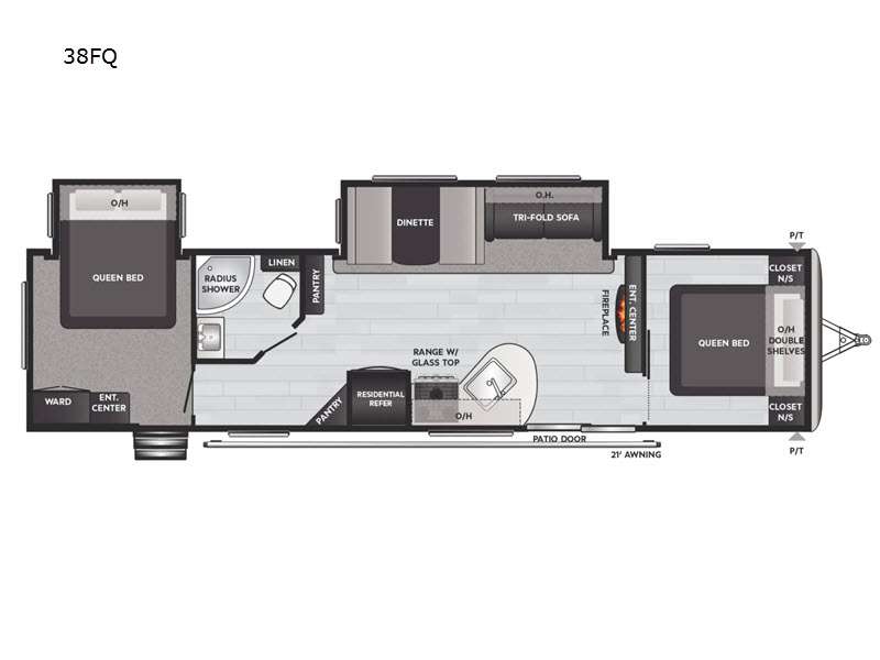 Spending time away from home will be easy in this Keystone Springdale! This destination trailer gives you two private bedrooms, both with queen-size beds, as well as some added sleeping space in the living area on the furniture. The large slide in the main area gives you plenty of walking around space while you cook all the family favorites with full amenities including a residential refrigerator. You will find plenty of storage throughout including in the two pantries, the overhead cabinets, the front bedroom closets, the rear bedroom wardrobe and along the exterior for your outdoor gear. And the full bathroom will keep you refreshed for your next activity or bedtime.