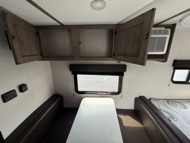 For a lightweight travel trailer that can easily accommodate your family you will want this Springdale Mini 1800BH! Your kids or guests will enjoy their own space with the rear set of 32" x 75" bunk beds. You and your spouse can get a good night's rest on the front queen bed and if needed the booth dinette can easily sleep an adult or two small children. Next to the bunks is the rear corner bathroom where you can freshen up after a long hike. You will not be lacking in storage with all of the overhead cabinets plus the exterior pass through storage big enough to hold your outdoor gear!