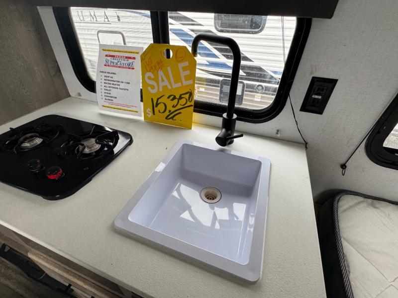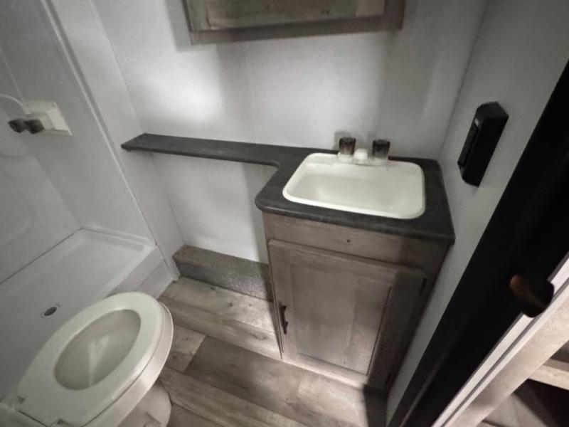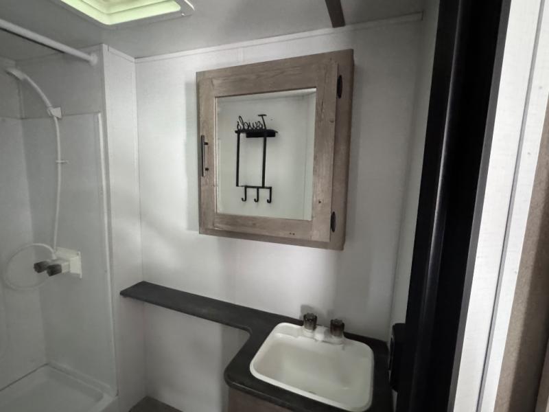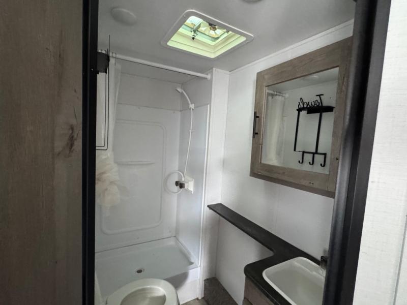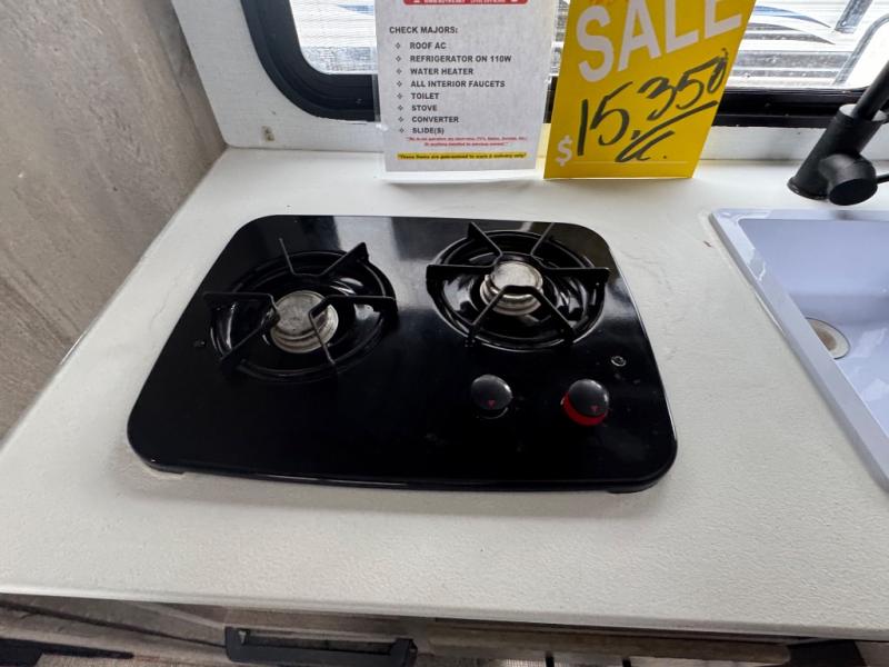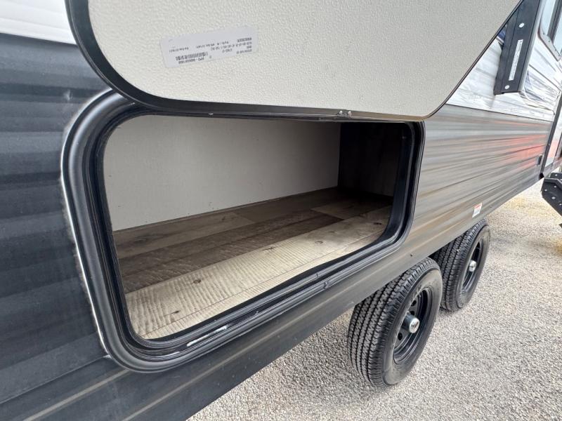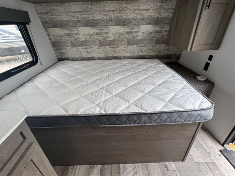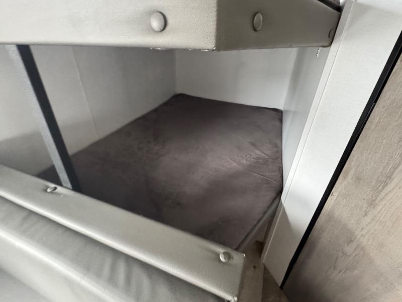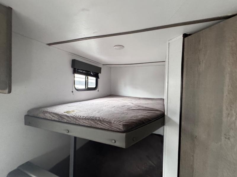 This is the first double axle trailer built as a Springdale Mini and you're going to love it! You can comfortably sleep seven people each night thanks to the double-size bunks, the queen bed, and the booth dinette. The kitchen includes a two burner cooktop, a 7 cu. ft. refrigerator, plus a pantry to store dry goods and snacks. A full bath on board makes staying clean each day easier than ever, and you'll find plenty of storage space for your belongings, including a closet by the queen bed, overhead compartments, and an exterior pass-through storage for fishing poles!
