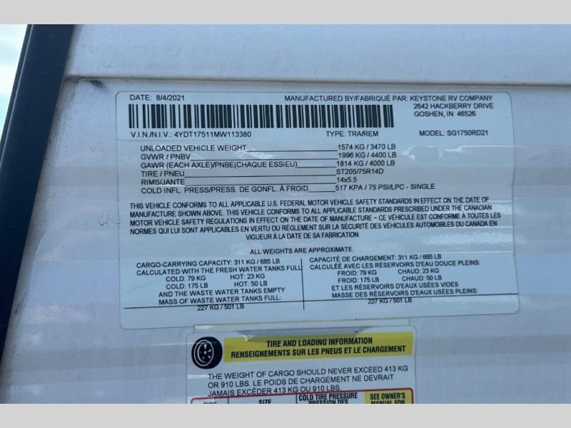 Used 2021 Keystone RV Springdale Mini MINI 1750RD Travel Trailer