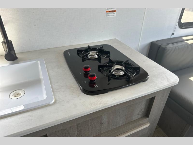 Come enjoy each camping trip in this single axle Springdale Mini 1750RD travel trailer. You can enjoy your meals at the U-shaped dinette, and in the evenings plan to visit or play a card game here. Along the front of this model there is a queen bed with bedside outlets, a closet at the foot of the bed to hang your clothes, and overhead cabinets above the bed. You can bring along all of your favorite snacks and easily store them inside the large pantry, plus you can easily whip up a meal with the two burner range.