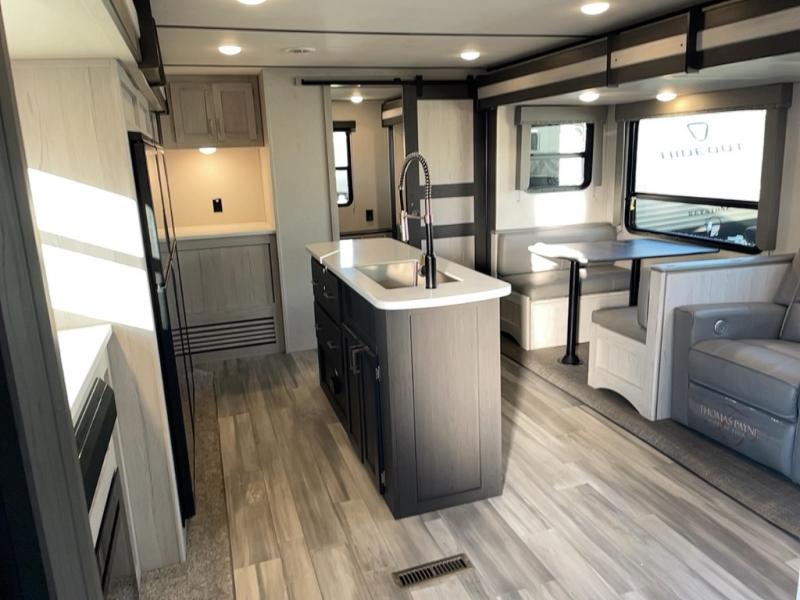 Set out on a redefined adventure with any one of the industry-best 100" wide-body constructed Sprinter Limited travel trailers by Keystone RV! The Tru-Fit slide construction offers a more durable slide room design that minimizes functional motor and structural stress, as well as resists leaking. The in-floor heating ducts allow for more airflow to distribute heat evenly, and the Tuf-Lok A/C duct joiners securely join duct work and A/C units to drastically reduce chilled-air leaks and boost cooling efficiency. Inside you'll find a deep single-basin stainless steel industrial sink and LG solid surface countertops in the kitchen, plus an upgraded bedspread and LED reading lights over the bed for your comfort. These fifth wheels also include a convenient eight-function remote for awnings, lights, and stabilizers/leveling, plus a 15K BTU Coleman Mach Quiet Cool A/C and a 35K BTU furnace to keep you comfortable year around!