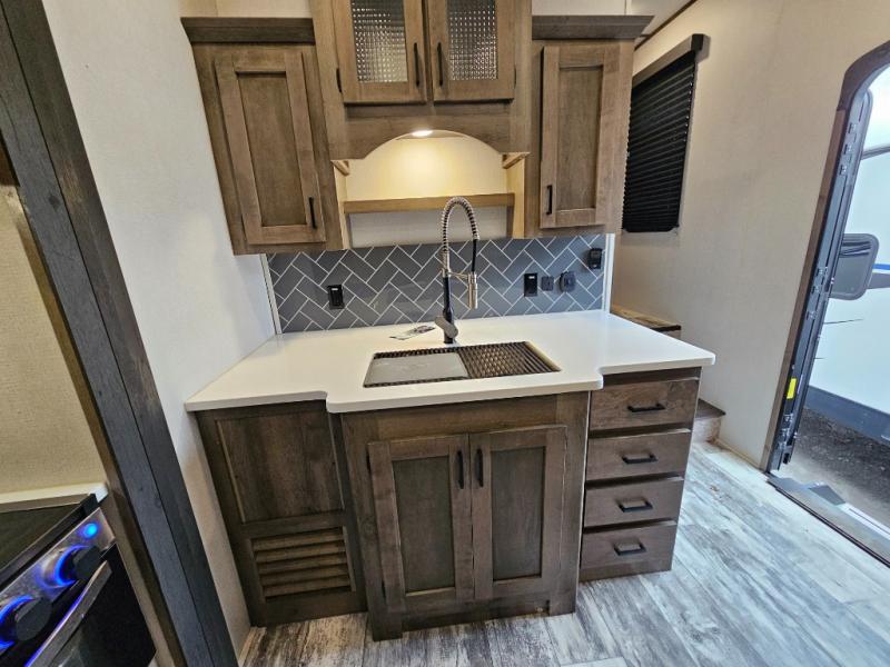Set out on a redefined adventure with any one of the industry-best 100" wide-body constructed Sprinter Limited fifth wheels by Keystone RV! The Tru-Fit slide construction offers a more durable slide room design that minimizes functional motor and structural stress, as well as resists leaking. The in-floor heating ducts allow for more airflow to distribute heat evenly, and the Tuf-Lok A/C duct joiners securely join duct work and A/C units to drastically reduce chilled-air leaks and boost cooling efficiency. Inside you'll find a deep single-basin stainless steel industrial sink and LG solid surface countertops in the kitchen, plus an upgraded bedspread and LED reading lights over the bed for your comfort. These fifth wheels also include a convenient eight-function remote for awnings, lights, and stabilizers/leveling, plus a 15K BTU Coleman Mach Quiet Cool A/C and a 35K BTU furnace to keep you comfortable year around!