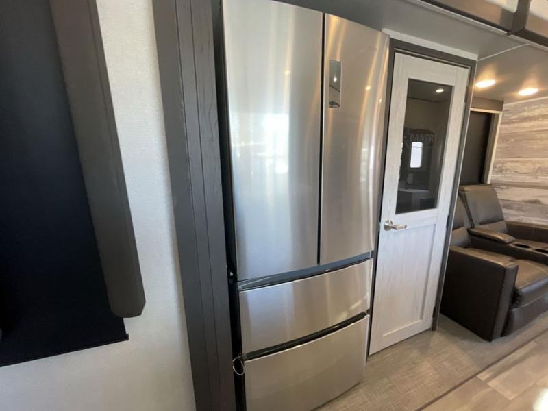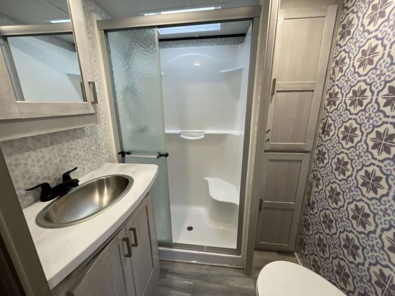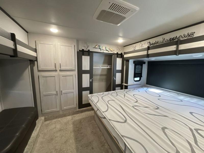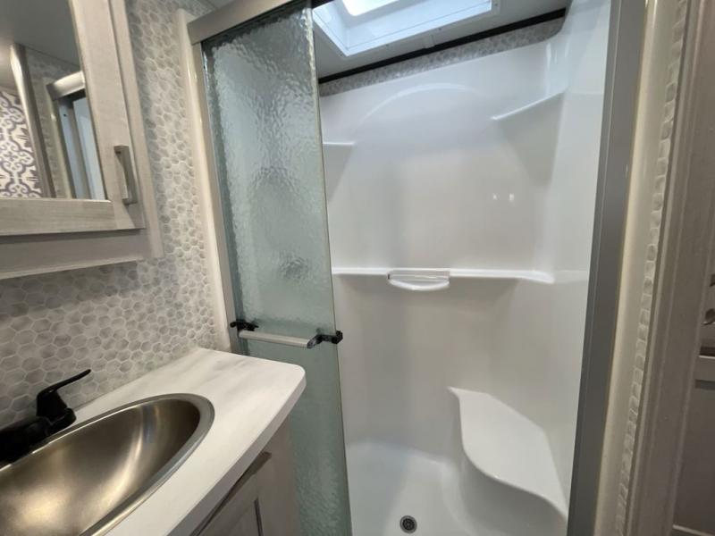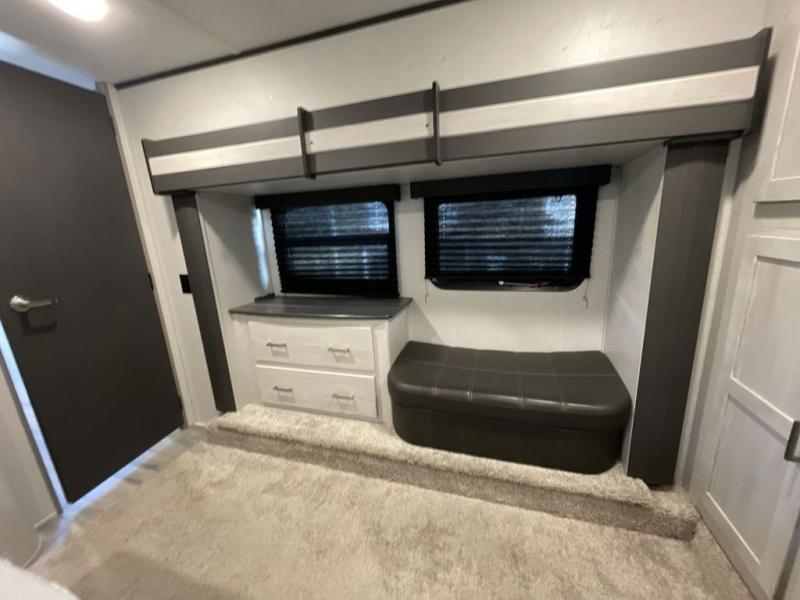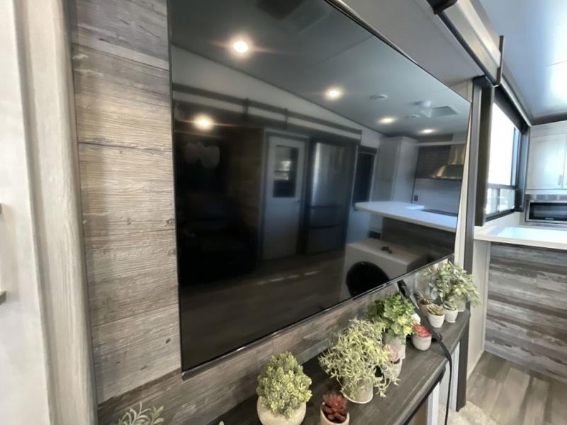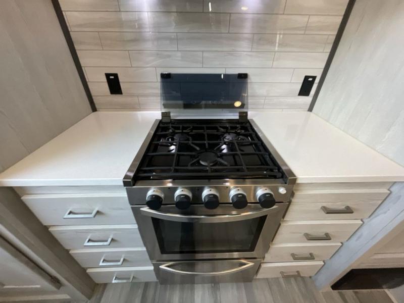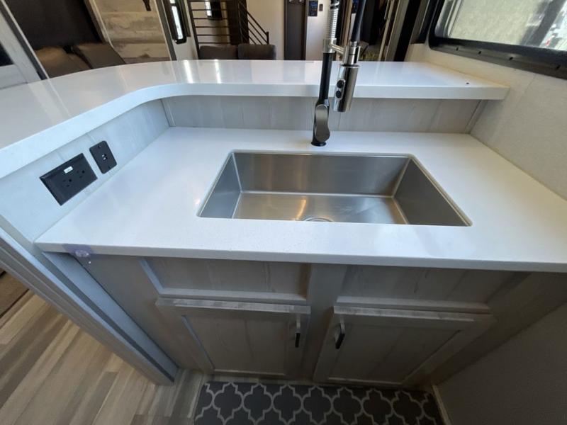 You haven't experienced a luxurious camping vacation until you have done so in this Sprinter Limited fifth wheel! The rear kitchen makes it easier for you to whip up some delicious pancakes for breakfast and serve them right off the three-burner range to those sitting at the breakfast bar on one of the three bar stools. You can even grill up some juicy burgers on the exterior two burner cooktop while you watch the big game if you choose to add the optional TV hookup. After you have stuffed yourself full, you can either take an afternoon nap on the tri-fold sofa in the living area or head to the front private bedroom and lie down on the king-size bed with outlets on either side for you to charge your electronics!