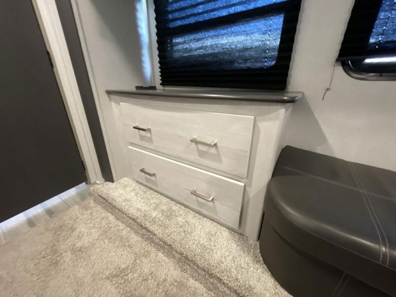 Set out on a redefined adventure with any one of the industry-best 100" wide-body constructed Sprinter Limited fifth wheels by Keystone RV! The Tru-Fit slide construction offers a more durable slide room design that minimizes functional motor and structural stress, as well as resists leaking. The in-floor heating ducts allow for more airflow to distribute heat evenly, and the Tuf-Lok A/C duct joiners securely join duct work and A/C units to drastically reduce chilled-air leaks and boost cooling efficiency. Inside you'll find a deep single-basin stainless steel industrial sink and LG solid surface countertops in the kitchen, plus an upgraded bedspread and LED reading lights over the bed for your comfort. These fifth wheels also include a convenient eight-function remote for awnings, lights, and stabilizers/leveling, plus a 15K BTU Coleman Mach Quiet Cool A/C and a 35K BTU furnace to keep you comfortable year around!