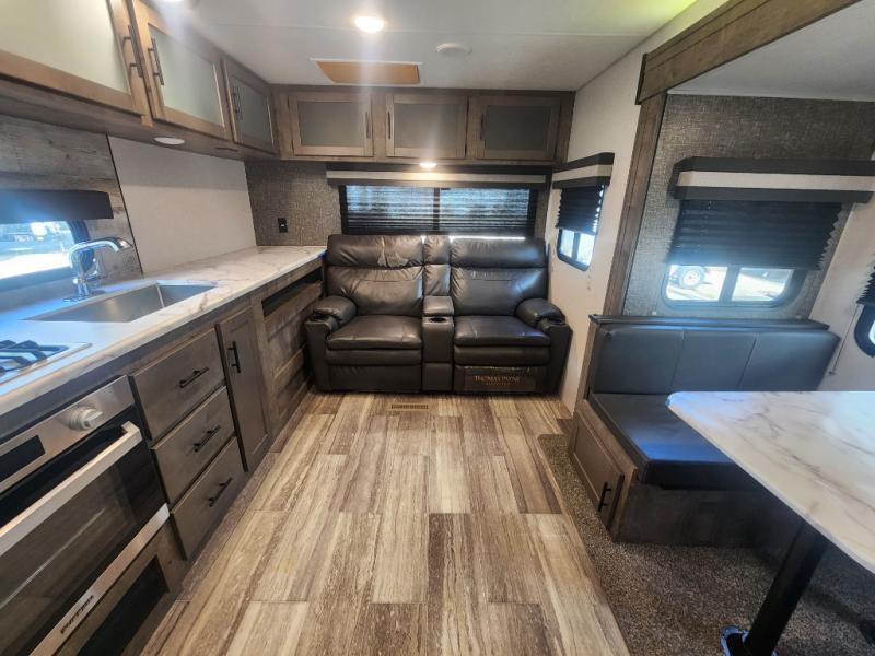 Come connect with nature in this Connect travel trailer! The master suite is going to provide you with many nights of great sleep since it has a king-size bed, and the private entrance into the dual-entry bathroom is going to make it easy to slip into the radius shower discreetly. The kitchen has many features for easy meal prep, like the 21" stainless steel oven, the seamless countertops, the deep undermount stainless steel sink, the stainless steel microwave, and the 8-cubic foot refrigerator. Plus, there is also an outdoor kitchen that you can use while you are playing outside with the rest of the family.
