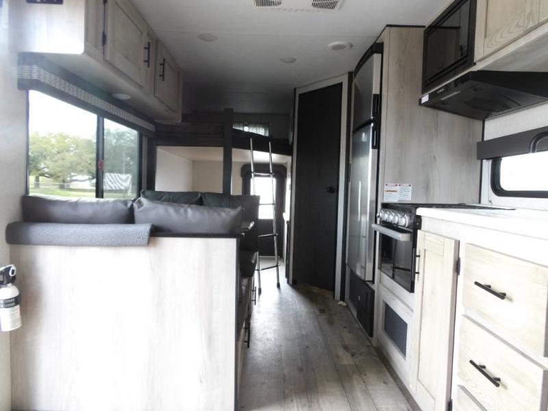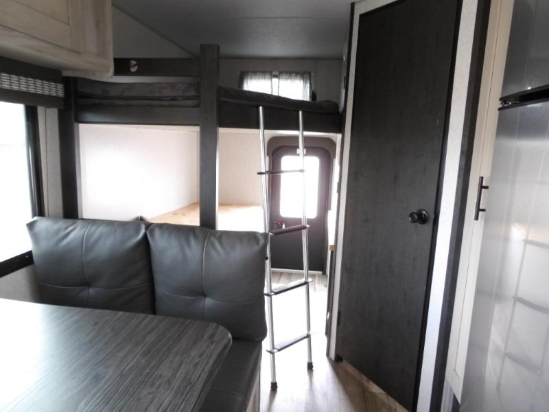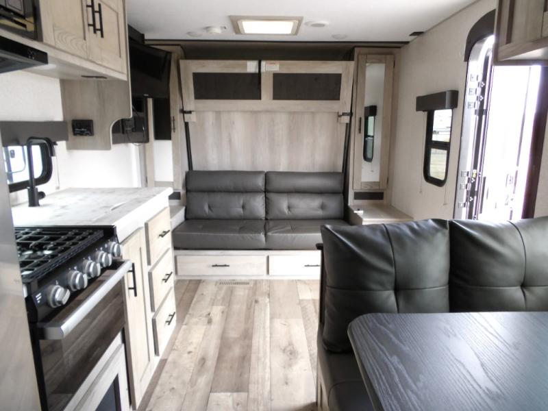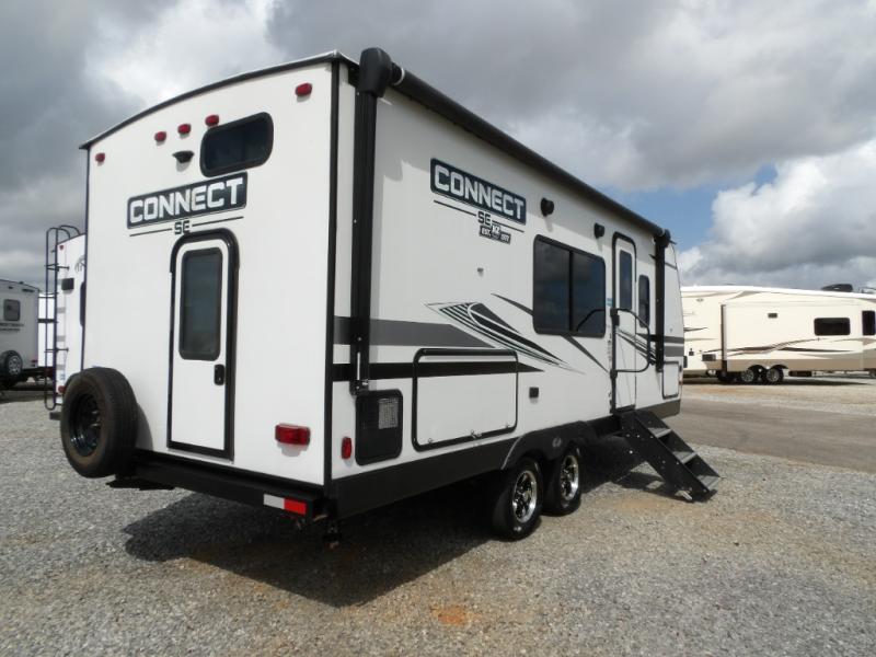 Your family will love this Connect SE travel trailer with double-size bunks for the kids and their friends with a full bathroom conveniently located steps away and a queen Murphy bed/sofa combo in the front giving you a sleeping space at night and a sofa during the day. The booth dinette offers another space to sleep after you are finished eating or playing games. The cook will love the galley kitchen that offers a pantry and 10-cu. ft. refrigerator to hold all the ingredients and snacks, and the outside kitchen offers another way to make meals for everyone. You will find storage throughout the inside, and the outside offers a trunk door and pass-through storage for the larger outdoor items such as games, chairs and such.