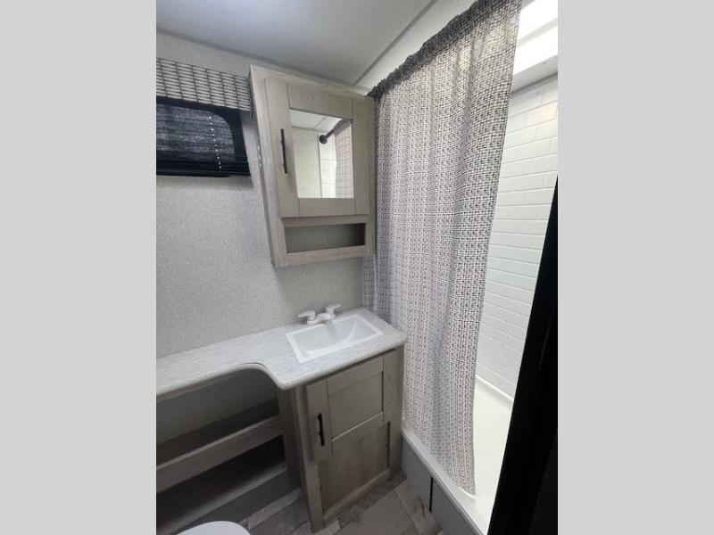 The NXG frame foundation for each Connect SE travel trailer by KZ is just as impressive as its interior since it is constructed with high-strength low-alloy prime steel, uses the CNC controlled rail fabrications and camber, plus eliminates frame failures, construction issues, and corrosion! The exterior also includes a one-piece seamless, walk-on roof that has Tufflex roofing material, UVA and UVB-resistant gelcoat Lamilux® exterior, 3/8" fully walk-on roof decking and a heated, insulated and enclosed underbelly giving you freedom to travel during any climate. Some of the interior features that are sure to impress include Rich Woodbridge maple cabinetry, hand-crafted mortise and tenon cabinet doors, accent trim on corners and entry door, a matte black residential kitchen faucet, and much more! Choose a lightweight, low-priced Connect SE today!