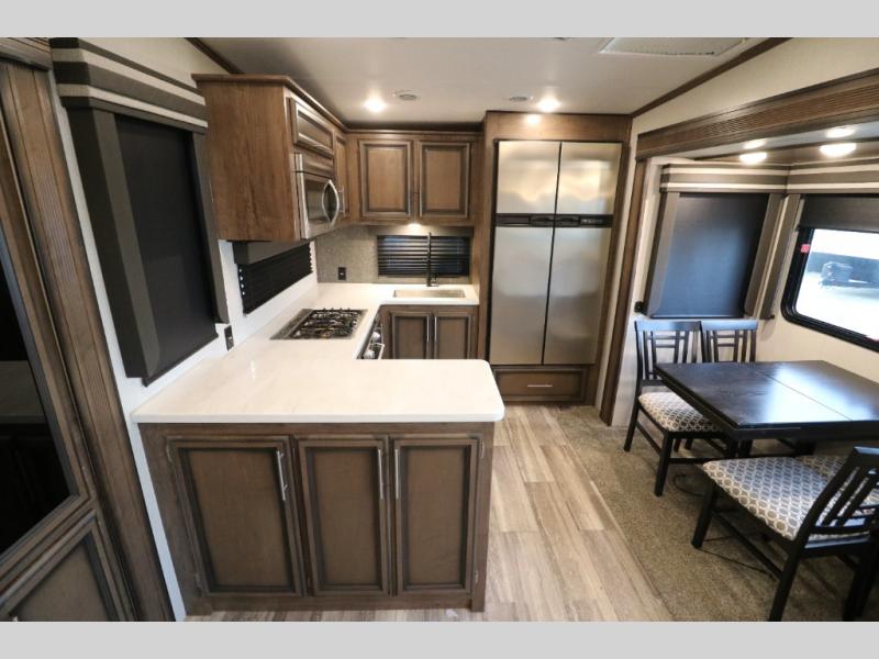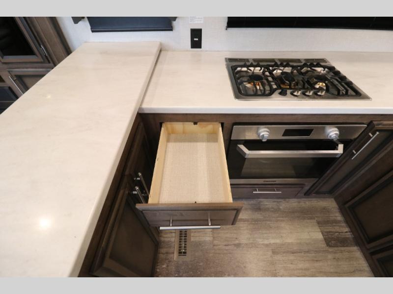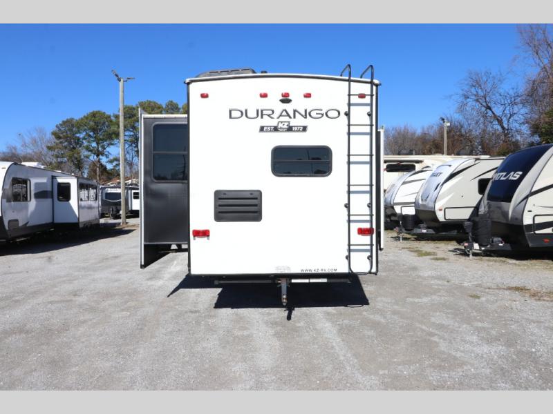 With any KZ Durango fifth wheel you will have the lightest high-profile, wide body, luxury fifth wheel in the industry with six-sided aluminum framing, the All Weather Insulation package which includes a heated, insulated and enclosed underbelly to travel during any climate, and Tufflex roofing material that is flexible, puncture resistant, and reflective. Each model features a fully-vented attic system with two attic vents providing vital escape routes for unwanted moisture, and the Durango Towing package which includes a 2" towing receiver hitch with 4-pin wire harness connection, a 3,000 lb. tow rating, and 300 lb. hitch rating. The interior includes features such as a Serta Comfort foam king bed, overhead storage with decorative shelving, a residential one-piece fiberglass shower stall with built-in seat and glass doors, a 24" oven with four-burner gas range and 30" convection microwave, plus many more features you will want to have. Make your choice today!
