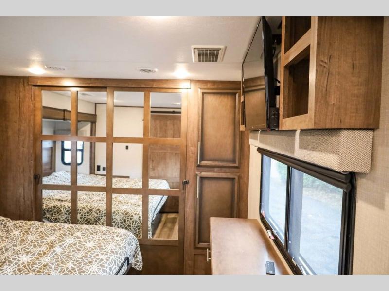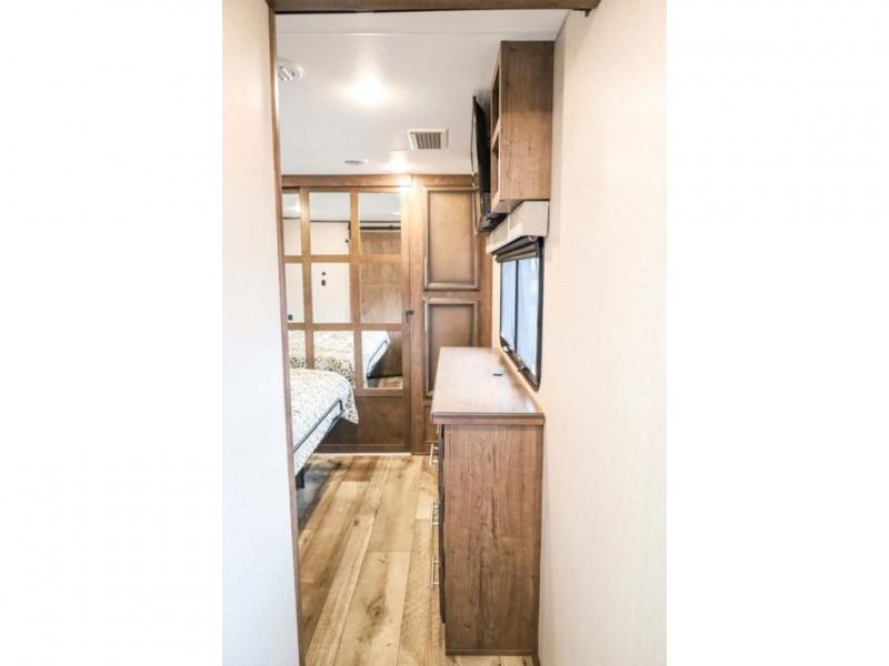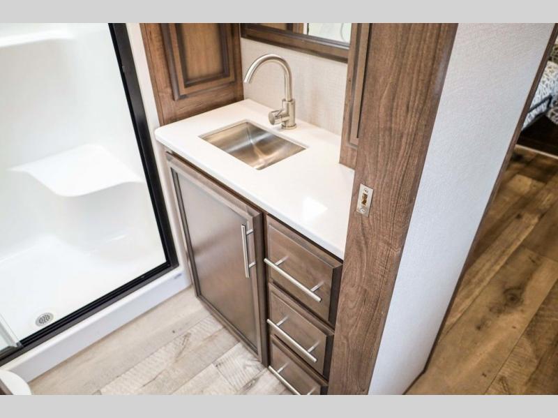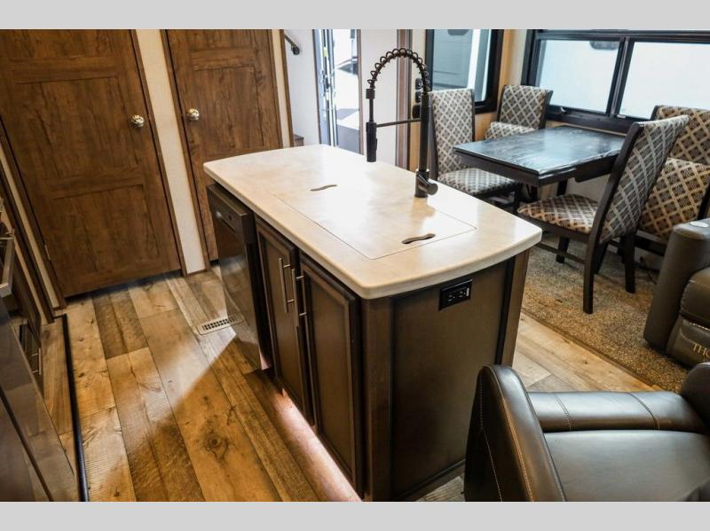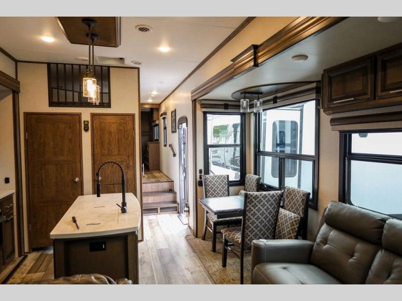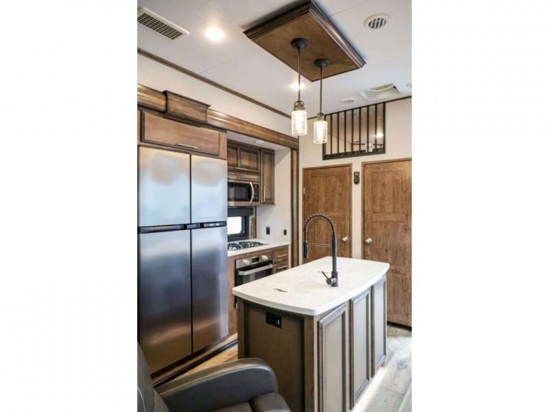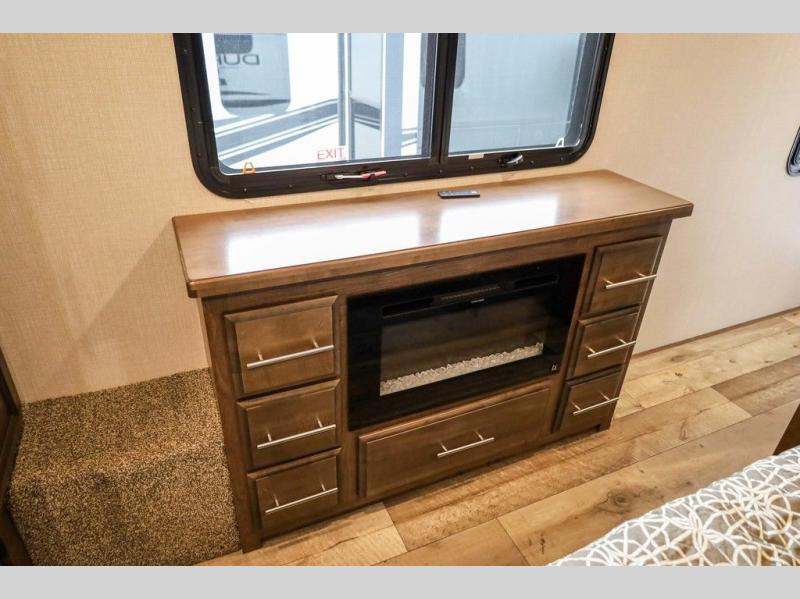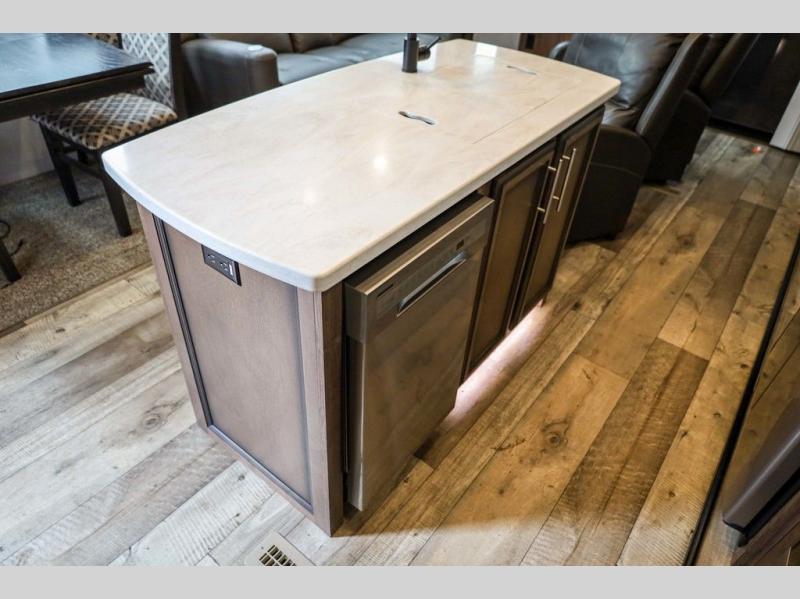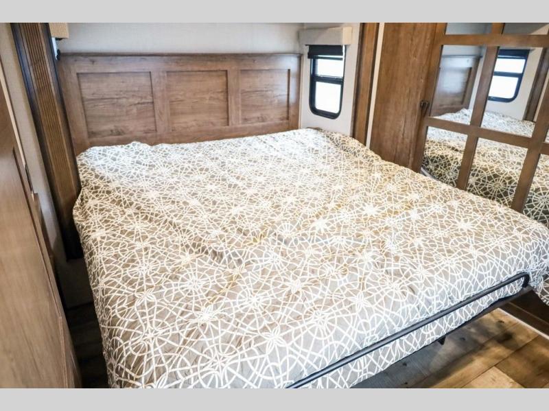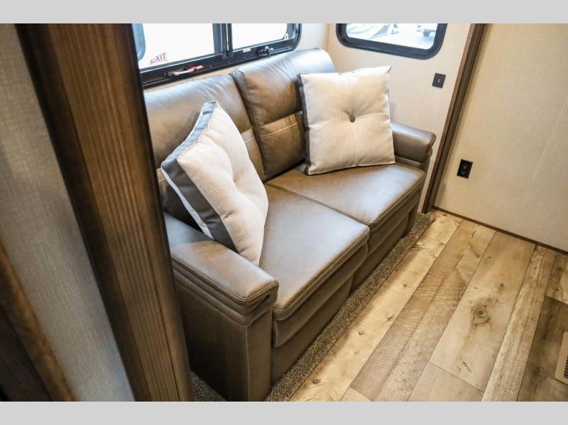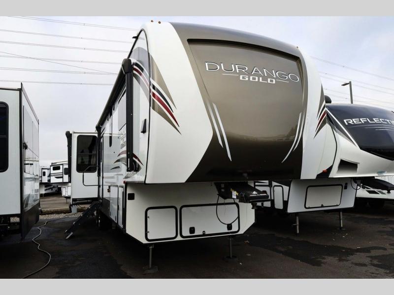 With any Durango Gold fifth wheels by KZ you will have flexible, puncture resistant, and reflective Tufflex roofing material, six-sided aluminum framing, and a heated, insulated and enclosed underbelly to travel all year long. Each model features a fully-vented attic system with two attic vents providing vital escape routes for unwanted moisture, and the Durango Towing package which includes a 2" towing receiver hitch with 4-pin wire harness connection, a 3,000 lb. tow rating, and 300 lb. hitch rating. The lithium-ready charging station includes a dual converter allowing you to flip a switch to choose between lithium or lead batteries. The interior offers outstanding features such as theater seating with cupholders, a USB plug, heat, massage and power recline/decline, an under-mount bathroom stainless steel sink with waterfall faucet, bedroom cabinetry with built-in hamper, and a Gold's 70" x 80" walk-around electric-tilt king bed with underbed drawers for extra storage. The list keeps going, choose your favorite Durango Gold today for luxury full-time traveling!