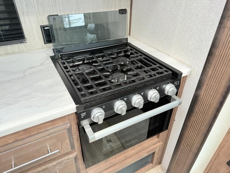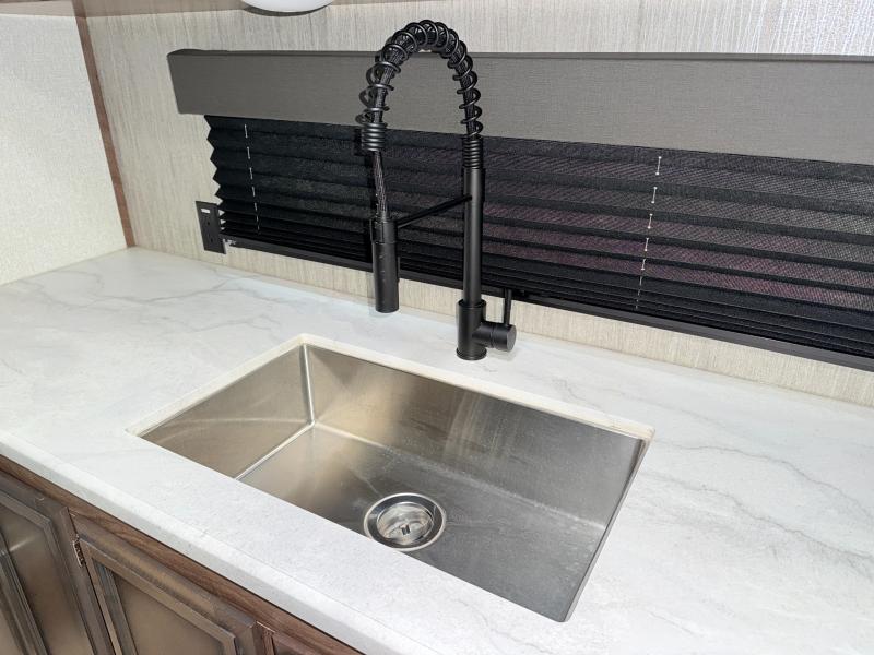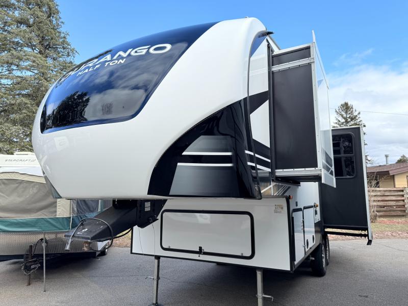 You will be absolutely impressed by the KZ Durango Half-Ton fifth wheel! With sumptuous décor and unparalleled quality, there isn't much else that compares. The Durango Half-Ton fifth wheel has a Lamilux gel-coat fiberglass, a steel powder-coated frame, a one-piece, seamless, walk-on Tufflex roof, and a reinforced heavy-duty fiberglass front cap. You can travel confidently with the Dexter axles that have self-adjusting brakes, the Equa-Flex rubberized suspension, and the 16" nitro-filled tires, and the exterior speakers and electric awning with LED lights will make for a great party space once you have made it to your destination. The fully finished, heated and sealed basement storage compartment will safely transport your gear to the campsite, and you can use the leash latch with bonus beverage holder to keep your puppy secured while playing outside.