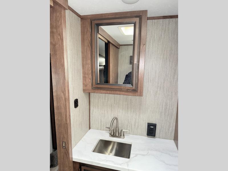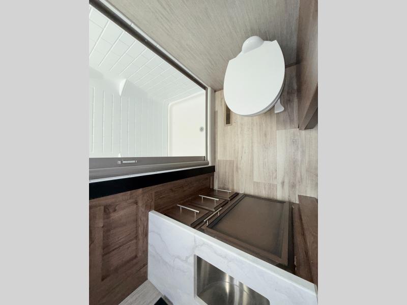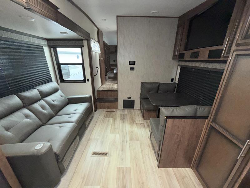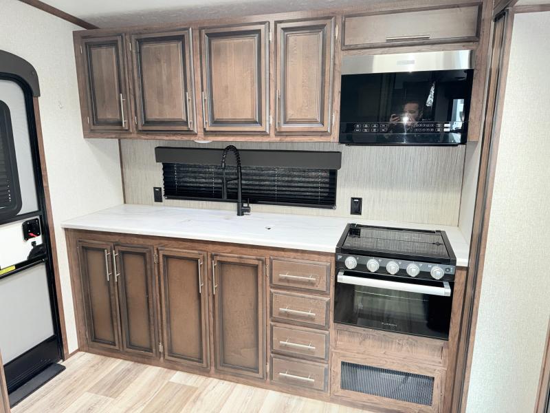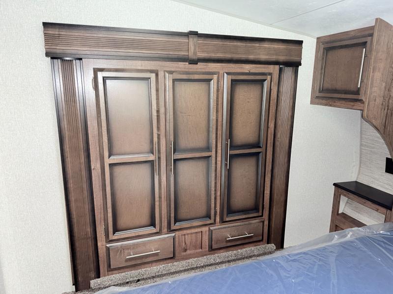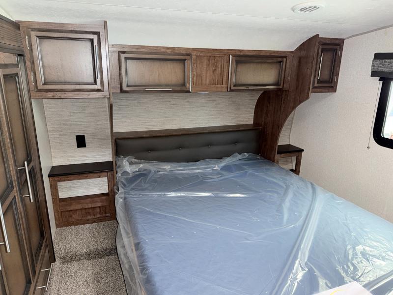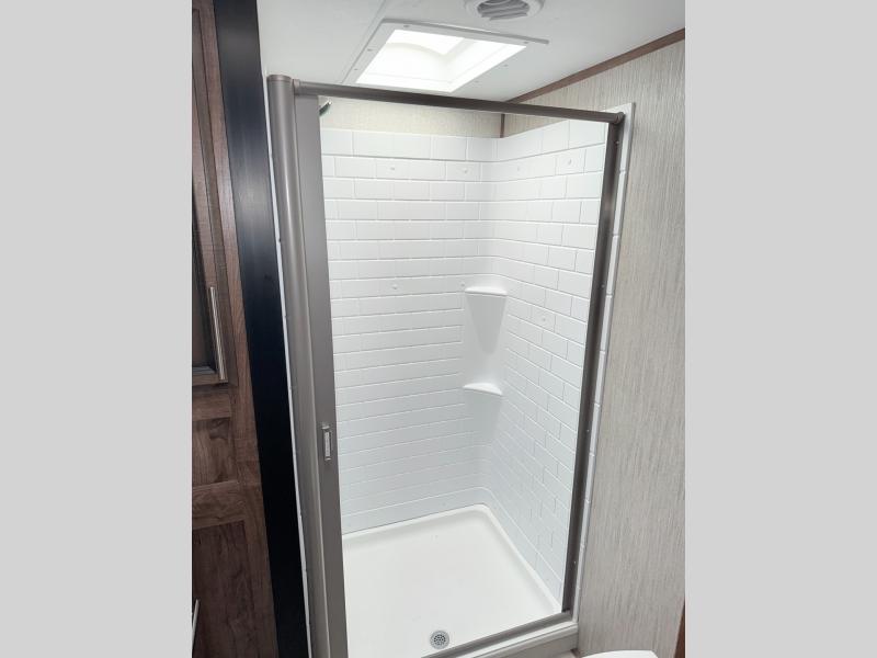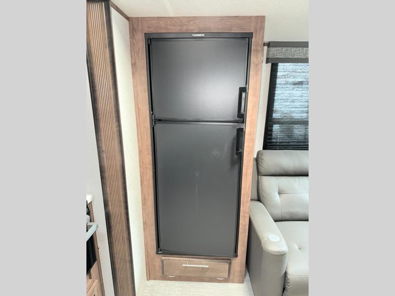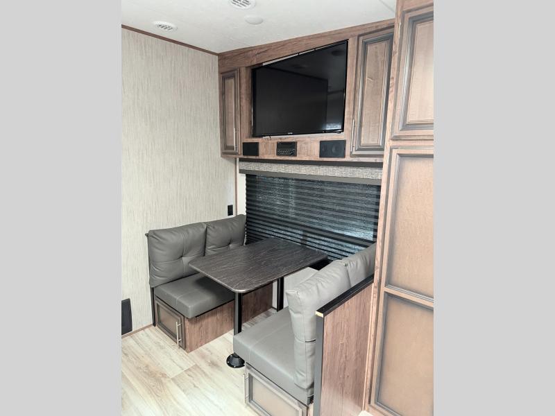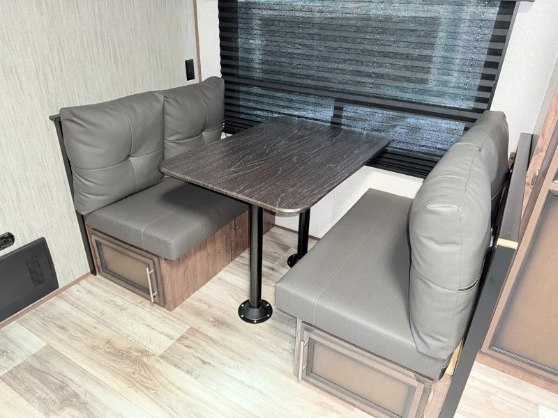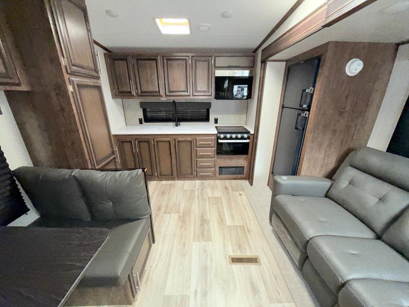 This Durango Half-Ton fifth wheel gives you a great space to spend your time in! There is a rear kitchen so that you can get to cooking as soon as you enter the trailer, and the single slide holds the 8-cubic foot refrigerator and hide-a-bed sofa so that you have more room to work in the kitchen. The pantry is right next to the booth dinette, and the entertainment center with LED TV sits right behind the dinette so that you can view it easily from the sofa. Head into the full bathroom if you need to freshen up and enjoy the extra sunshine streaming in through the shower skylight. If you want to take a nap, just walk into the private bedroom and lie down on the queen-size bed.