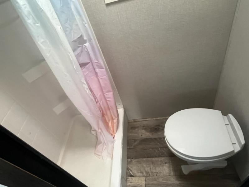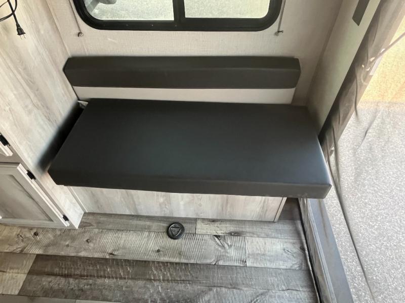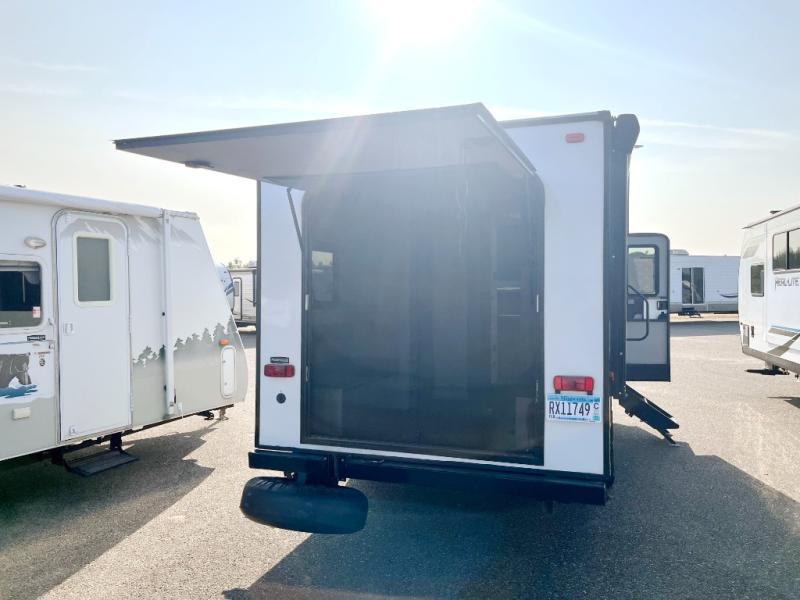 You don't need a large toy hauler to attend your cycling race this weekend, just take this HATCH travel trailer! You can easily unload your bike with the rear hatch door that opens vertically, then head out on a trail ride. Don't forget your helmet! Once you've worked up an appetite, prepare a hearty meal on the two burner cooktop, or use the quick microwave oven. The rear dinette allows you to dine indoors while enjoying fresh air and a beautiful view when the hatch door is open. You'll find plenty of storage space, including overhead cabinets, a pantry, plus a pass-through storage for your riding gear!