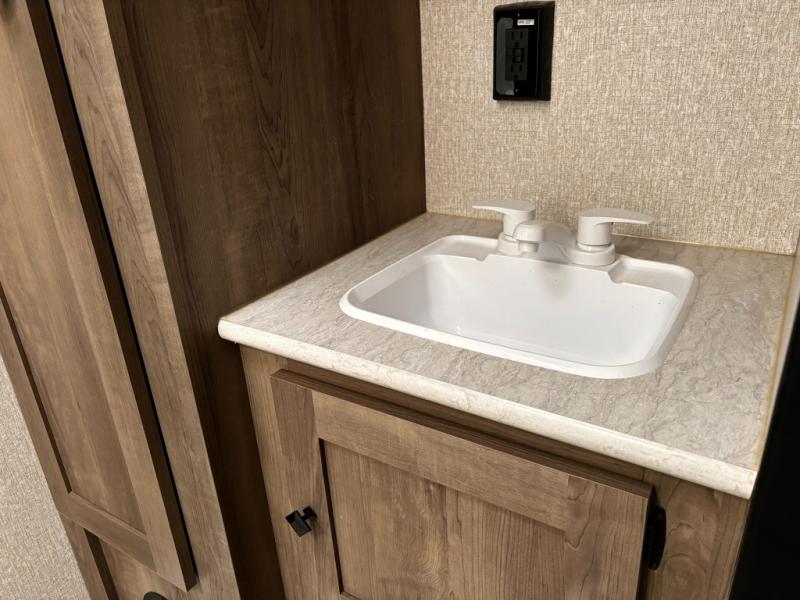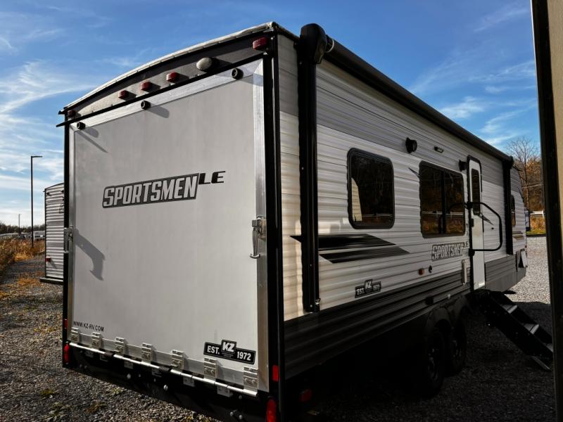 With any KZ Sportsmen LE travel trailer or toy hauler, you can experience a home away from home only a few steps away from nature and fun! Each model offers quality beginning with the one-piece seamless, walk-on Tufflex roofing material that has high solar reflectivity and is highly puncture and tear-resistant, plus it includes high thermal emissivity and sustainable material. The full kitchen amenities include seamless countertops with a deep undermount stainless steel kitchen sink, and the easy-to-clean residential-grade linoleum is a joy to have when spills occur. The mandatory Climate Package has a heated, enclosed and insulated underbelly so that you can travel any season you like to any destination. So choose the Sportsmen LE that fits your affordable camping lifestyle and enjoy the great outdoors!