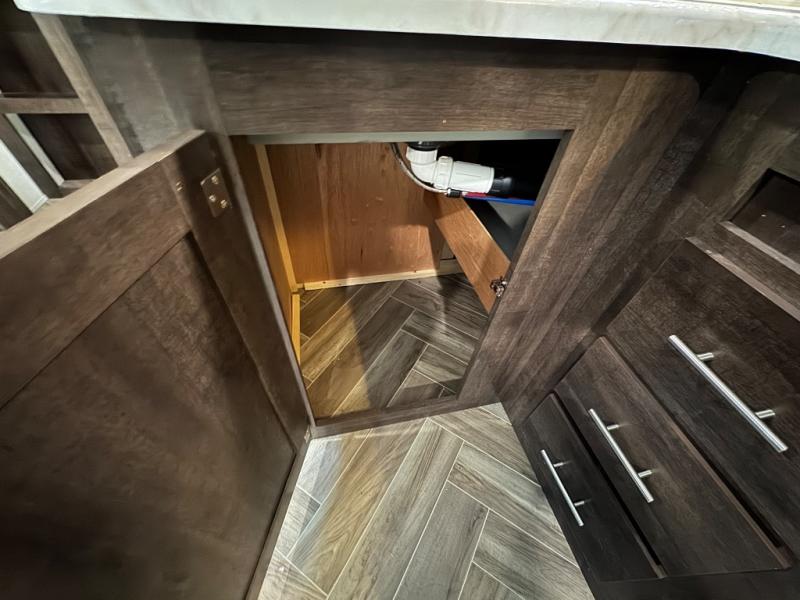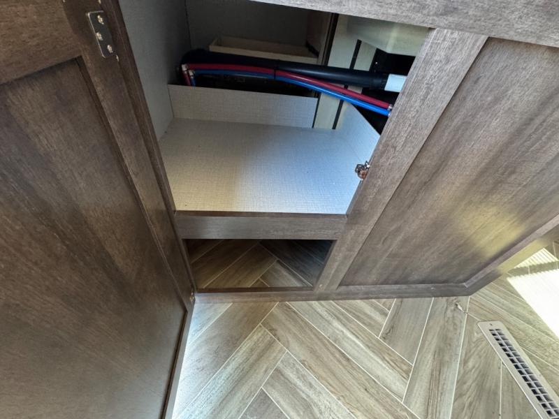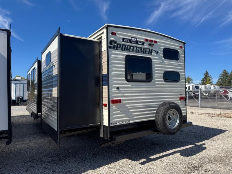 The Sportsmen SE travel trailer by KZ offers residential-grade linoleum for easy clean up, a stainless steel residential kitchen faucet and deep undermount stainless steel kitchen sink, color accented shower walls as a nice touch, dark accent trim on corners/entry doors, and lots of storage for your clothing, dishes, and such. The exterior gives you a one-piece, seamless, walk-on Tufflex roofing material, fully walk-on roof decking, an aerodynamic front profile with smooth metal front, three-toned exterior metal, and has been prepped for solar power and a backup camera. Start saving money and enjoy camping, choose the trailer that fits your wants and needs!