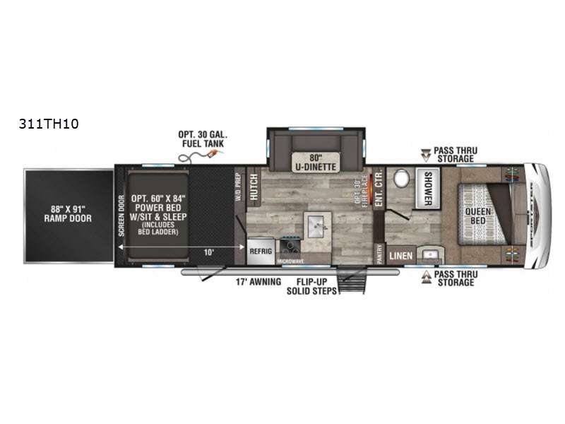 Private Bedroom! Double Entry!KZ Sportster toy hauler 311H10 highlights: