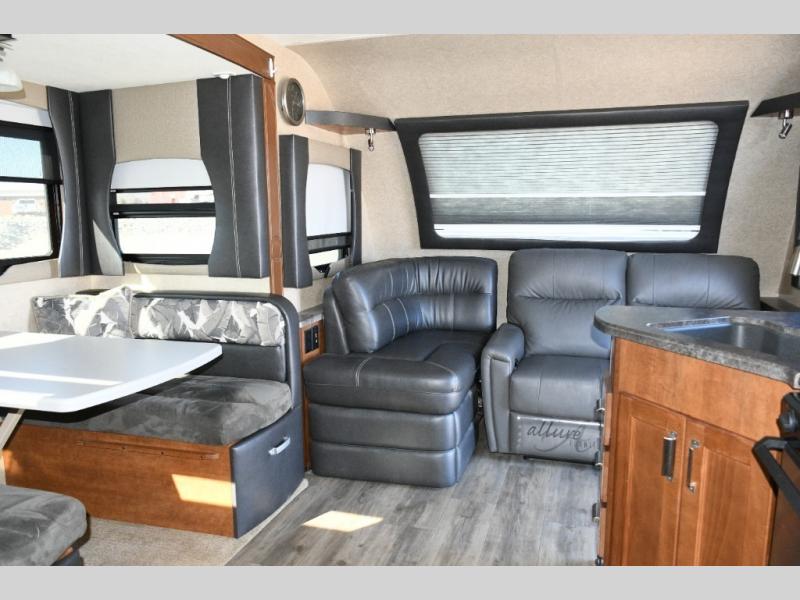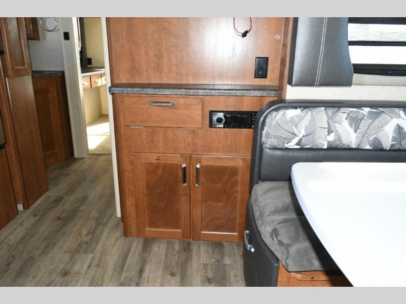 J-Lounge Sofa & Booth Dinette – Relax on the residential J-lounge sofa or enjoy meals together at the dinette with locking pull-out storage drawers for valuables.