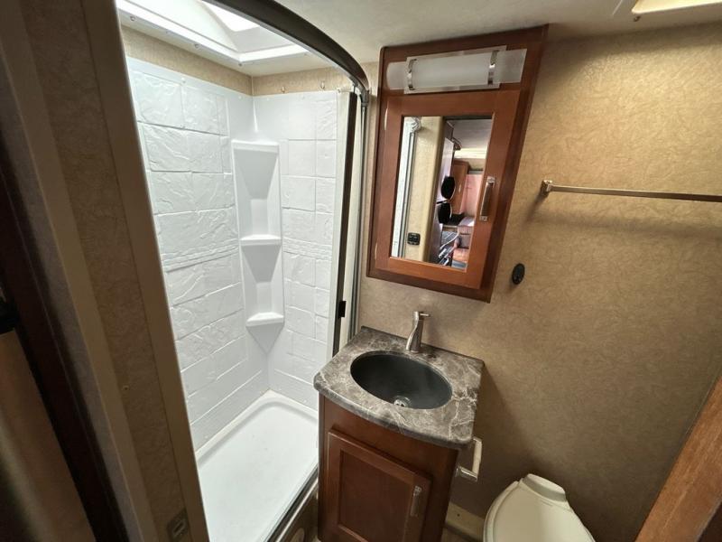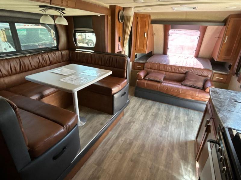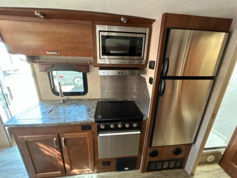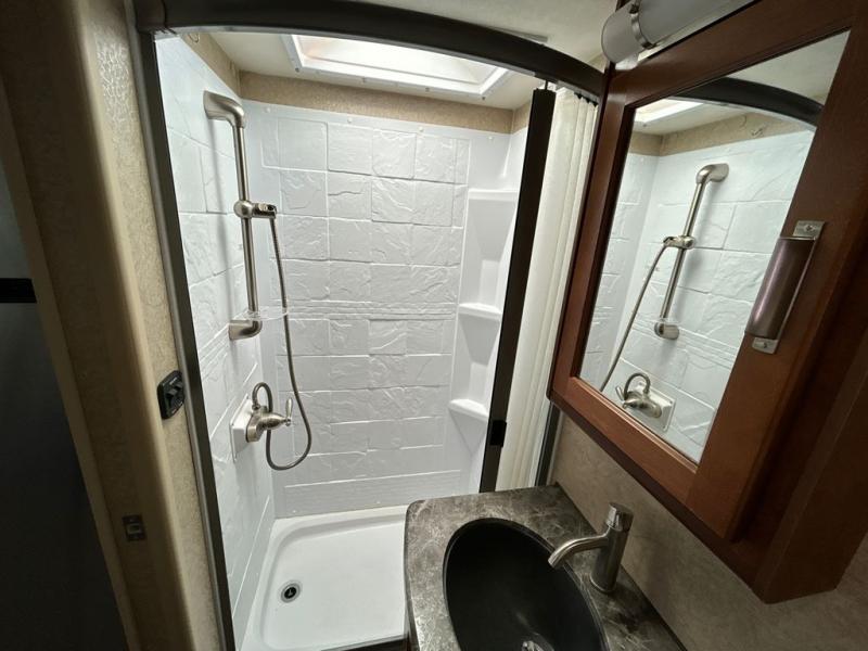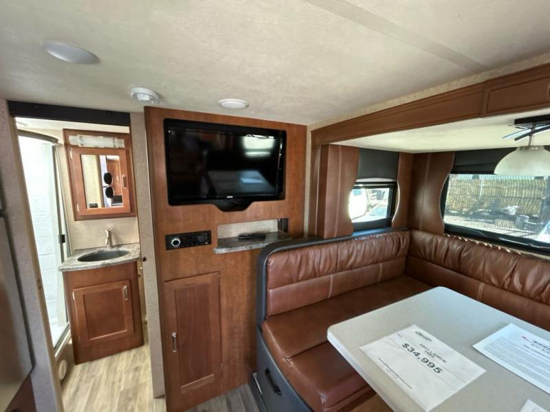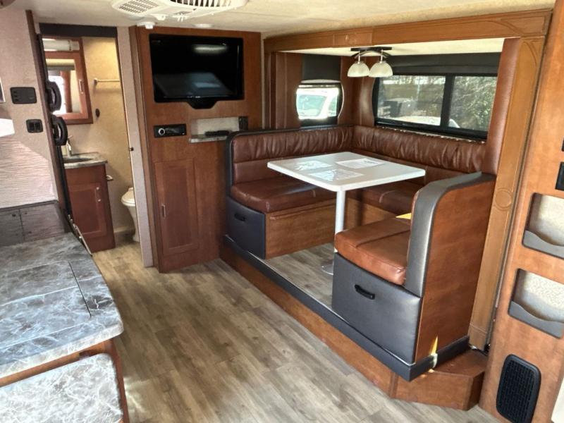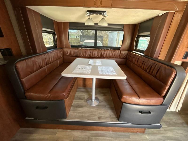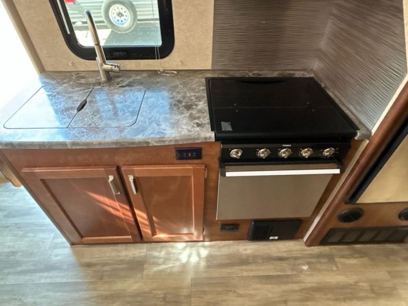You will enjoy every minute spent in this spacious travel trailer. Once you arrive at your destination, slide out the U-shaped dinette as the chef of the family prepares lunch on the three burner range. The folding galley extension will provide more counter space, along with the sink cover. Within the full rear bath you'll find a shower skylight for more standing room and a wardrobe to hang your clothes for your convenience. The queen bed up front includes a privacy curtain in case you have guests over, and you can choose to add the optional 32" TV in the main living area that is in great view from the dinette and the bed!