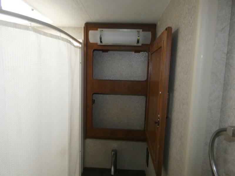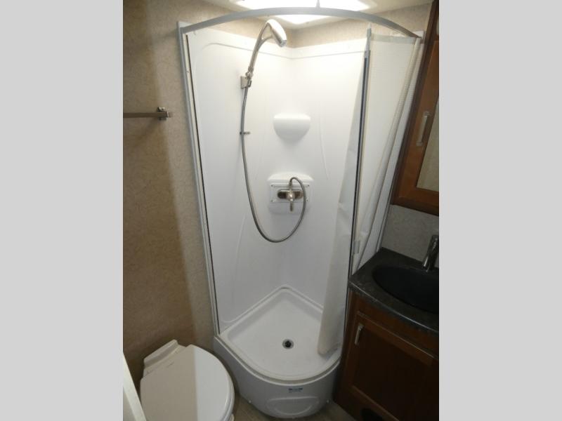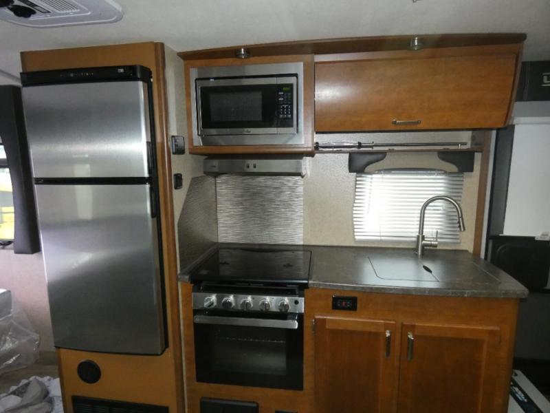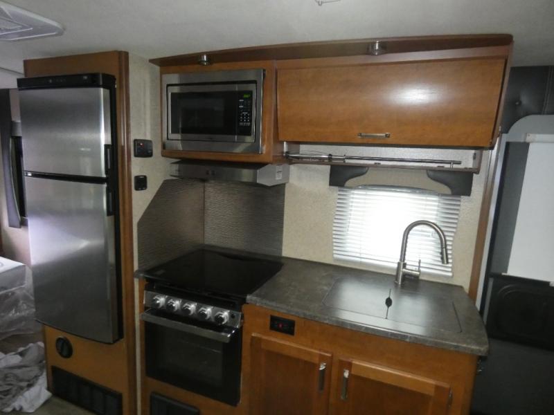 This travel trailer has everything you need while you're away from home. A full bath so you don't have to use the camp's facilities, kitchen appliances and extra counter space to prep and cook meals, plus a comfortable deluxe queen innerspring mattress with a pillow top for your comfort. The residential undermount large sink in the kitchen allows you to quickly clean up, plus there is a sink cover for even more counter space.
