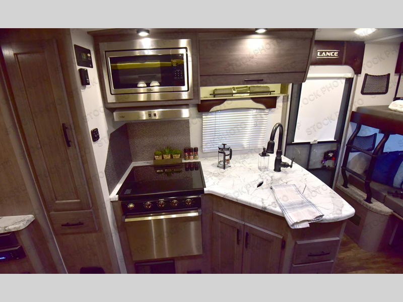 Each Lance travel trailer is constructed with a one-piece roof, aluminum framed sidewalls, and Azdel interior panel walls for a durable RV made to last. There are many hassle-free exterior features, such as the exterior wash station, the radius cornered storage compartment doors, and the optional electric awning which vary by size per model. Inside, you'll find Surf-X pseudo solid surface lightweight countertops and tables, Euro-ply cabinet construction, a galley/dinette area skylight to let natural light in, plus many more comforts. There are many options that can be added to further customize your travel trailer, like the optional 4 Seasons Comfort Technology Package, the optional back-up camera with a wireless monitor, the optional mountain scene graphics, and more!