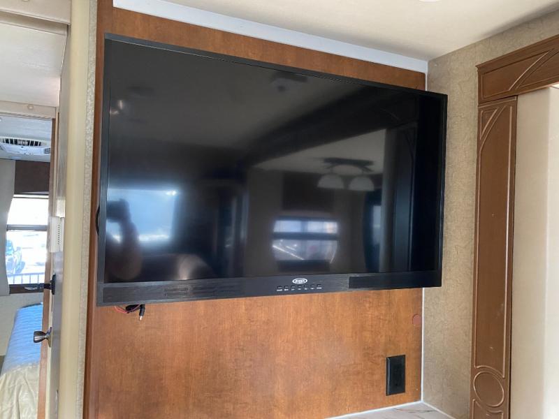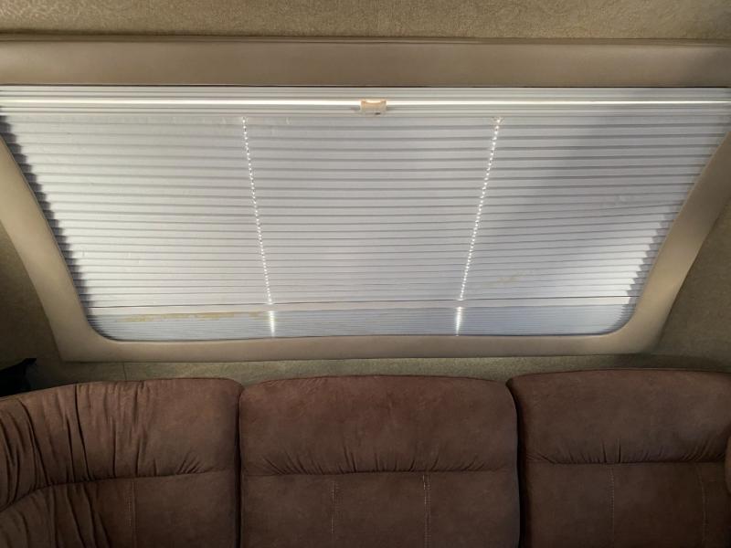 Step inside and experience the expansive front lounge, where oversized panoramic windows flood the space with natural light and offer incredible campsite views. The theater seating or sofa arrangement (depending on configuration) provides a perfect spot to relax, watch a movie, or unwind after a day of adventure. With dual slide outs, the living area feels truly open, giving you room to stretch out and enjoy your time indoors.