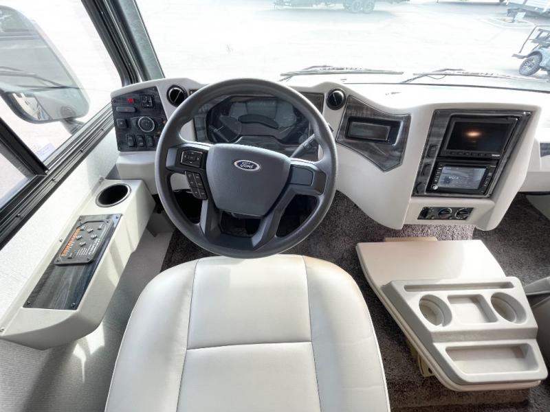 With any Bay Star Class A gas motorhome by Newmar you will be getting a quality motorhome that will make family time easier than ever. You will feel totally secure driving with the 7.3-liter V8 engine that sits on a Ford F-Series chassis, and features 350 HP to power your family vacations across the states. The electronic stability control will make the journey just as sweet as the destination, and the smart level hydraulic leveling jacks include a Bluetooth compatible touch pad to make set-up a breeze once you arrive. Each model is constructed with a BriteTEK roof with a walkable deck, aluminum-frame sidewalls and roof construction, plus Polar Pak R19 batten insulation in the roof so you can travel year around. The chef of the family will love the Bay Star kitchen with its handmade cabinetry, polished solid surface countertop with a stainless steel sink, plus vinyl flooring that is both eye-catching and easy to clean.