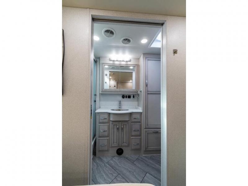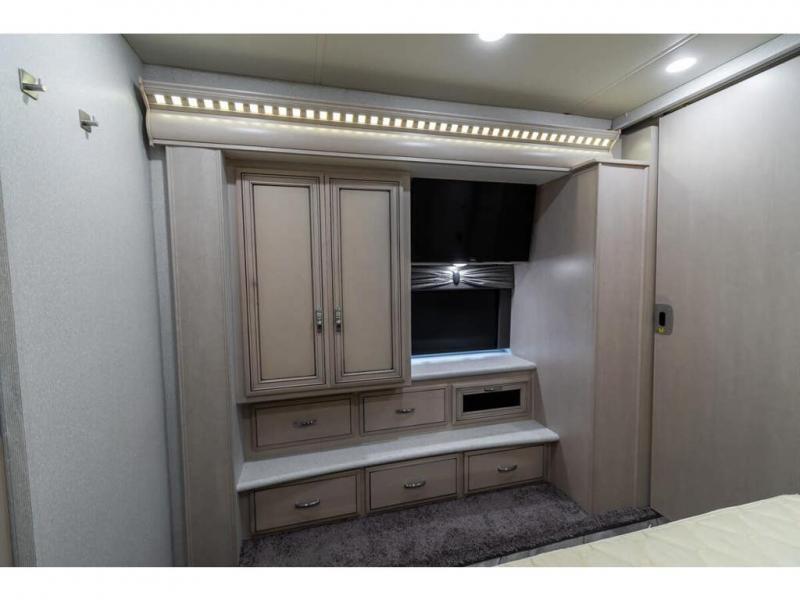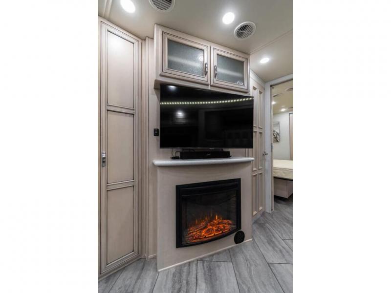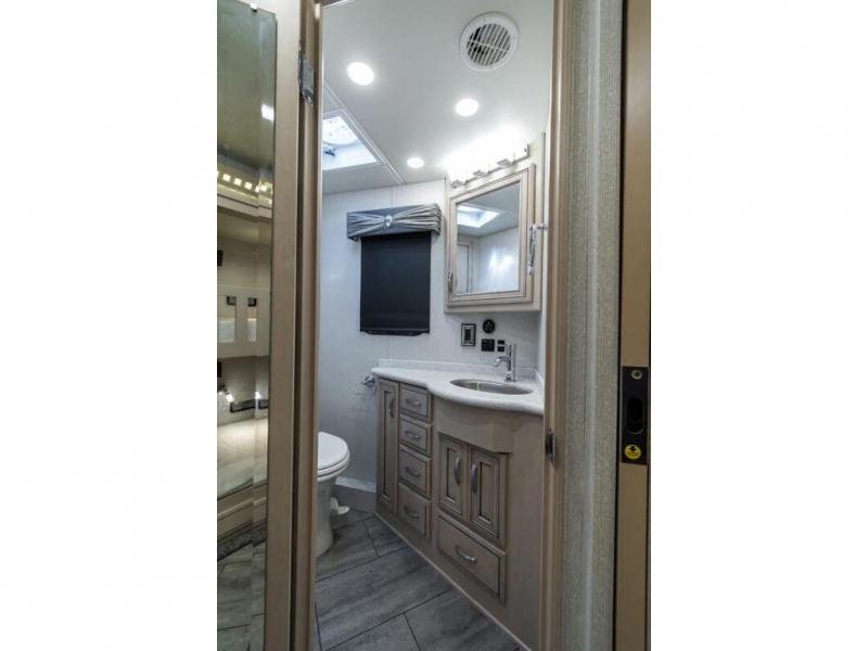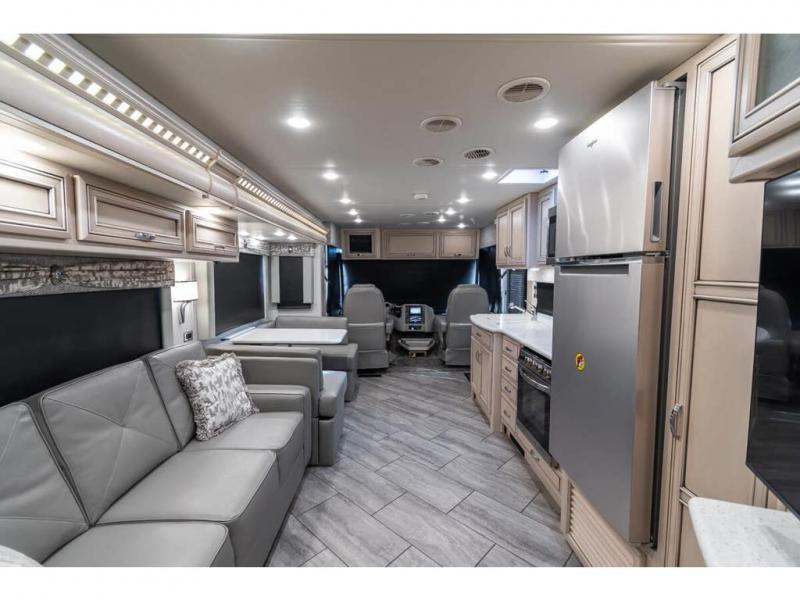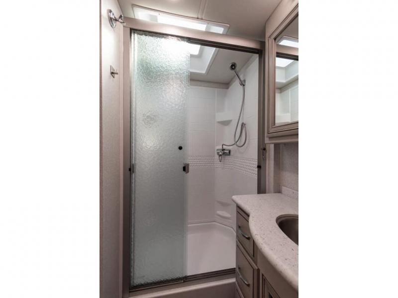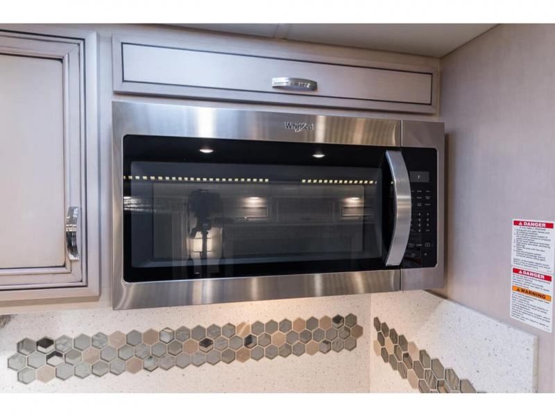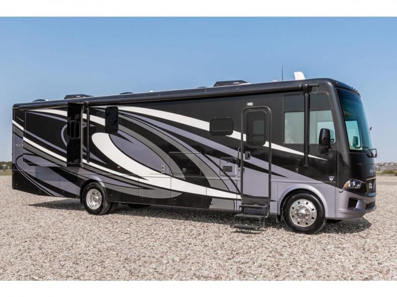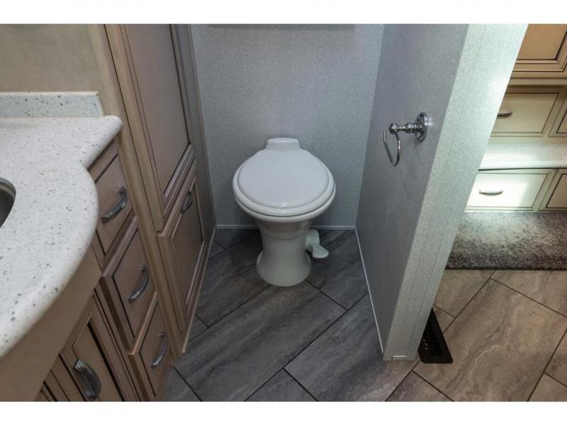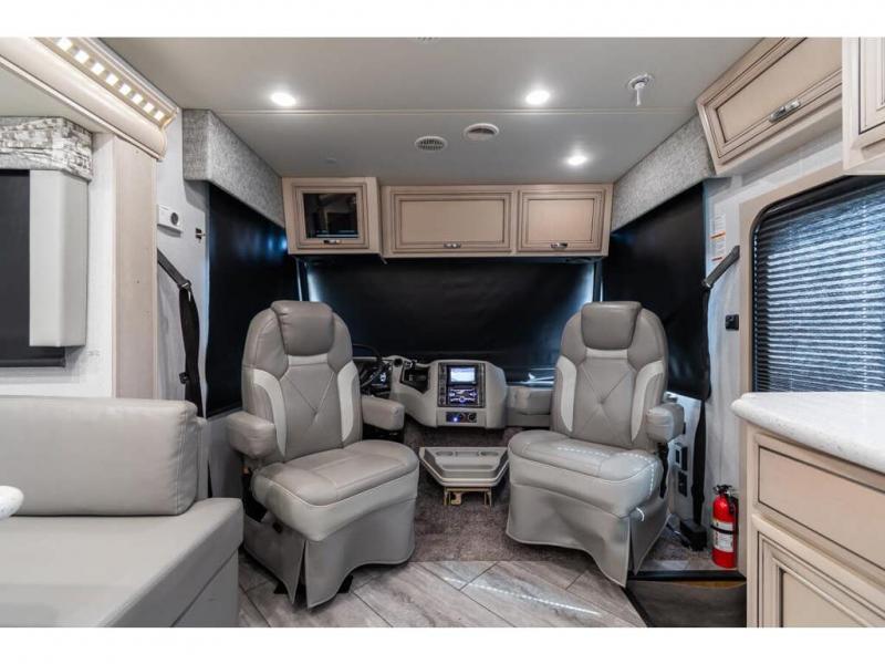 Your family vacation just got a whole lot sweeter in this motorhome that can sleep six to seven people each night. The bunk beds within the full-wall slide will be perfect for the kids and the slide out queen bed is great for mom and dad. Any additional guests can sleep on the comfort lounge or the booth dinette. Preparing meals is easy on the recessed three burner range or you can use the convenient stainless steel microwave. There is a dry bar with a Samsung LED TV for movie night, and you can grab the popcorn from the pantry. If you'd rather spend the evening outdoors, the power awning with LED lights will create an inviting outdoor living space. This model also includes a bath and a half so you don't have to worry about waiting in line any longer!