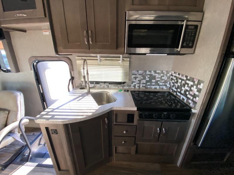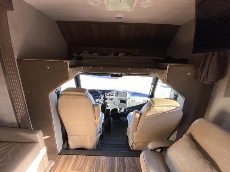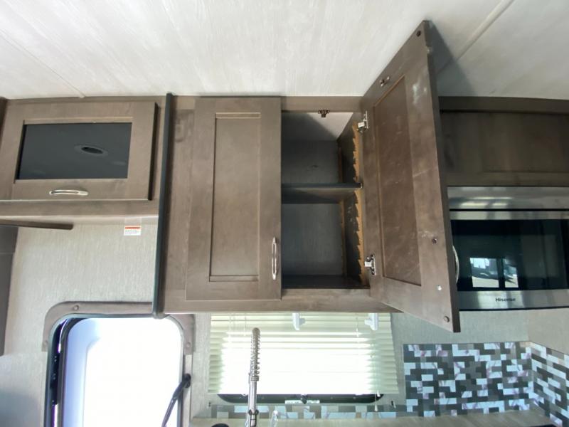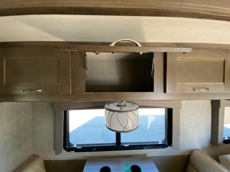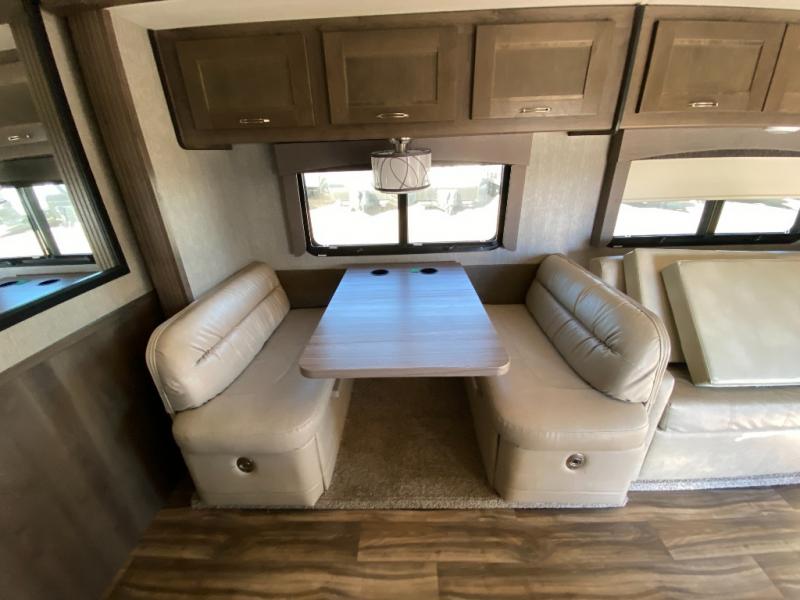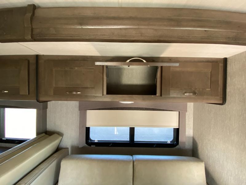 With this Triumph Class C gas motorhome, all of your adventuring dreams will finally be attainable! The set of bunk beds and bunk over the cab create compact sleeping spaces that help this coach sleep seven people comfortably, and the two slides provide the extra space needed to deliver those accommodations. You will also fully appreciate having your own full bathroom on board, and the residential refrigerator and over-the-range microwave in the kitchen will help you create hearty meals throughout each of your trips.