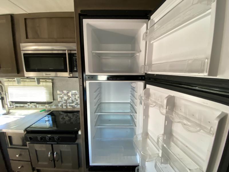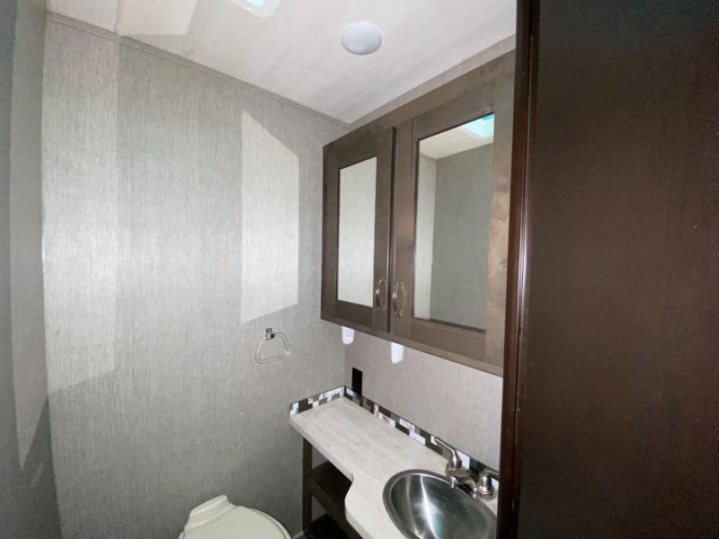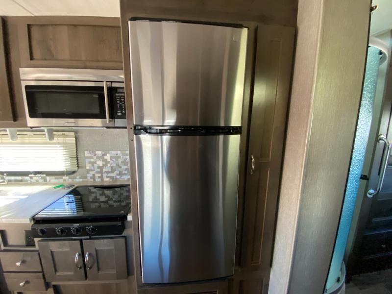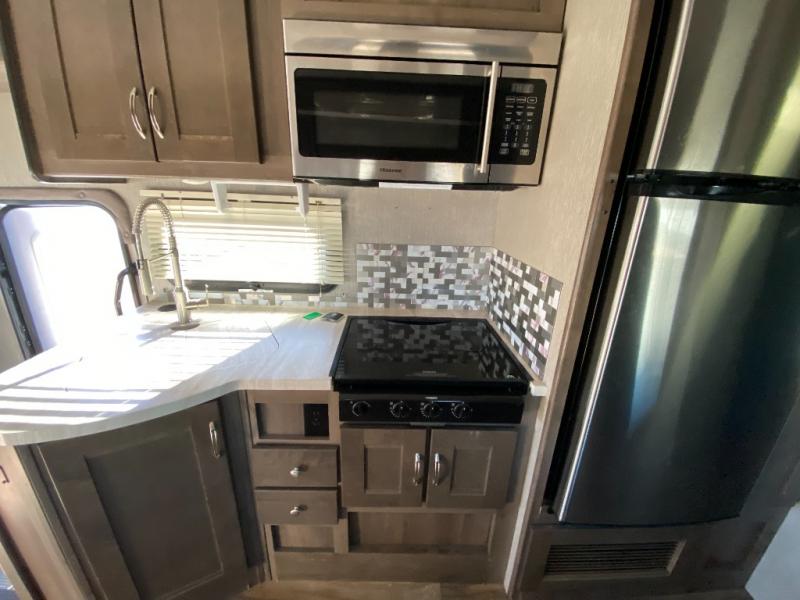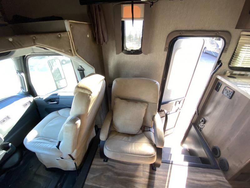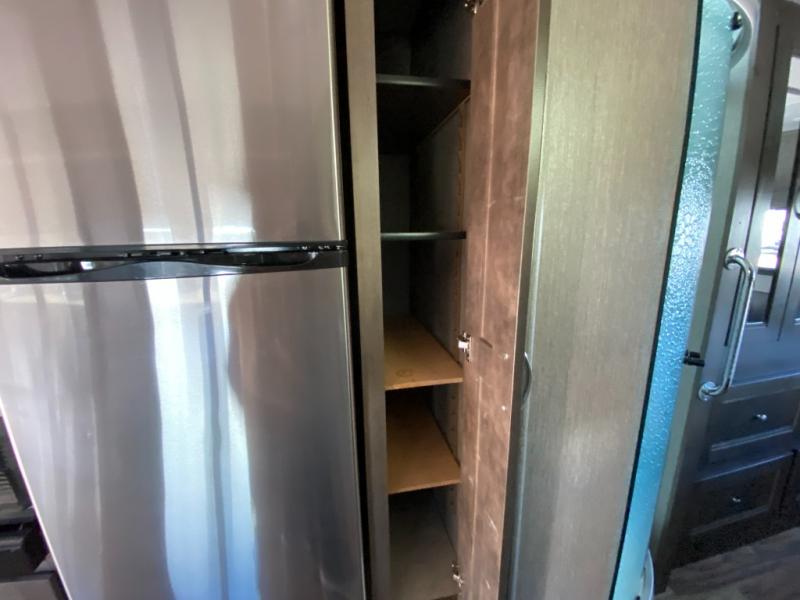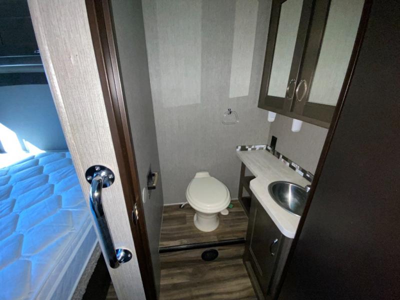 With this Triumph Class C gas motorhome, all of your adventuring dreams will finally be attainable! The set of bunk beds and bunk over the cab create compact sleeping spaces that help this coach sleep seven people comfortably, and the two slides provide the extra space needed to deliver those accommodations. You will also fully appreciate having your own full bathroom on board, and the residential refrigerator and over-the-range microwave in the kitchen will help you create hearty meals throughout each of your trips.