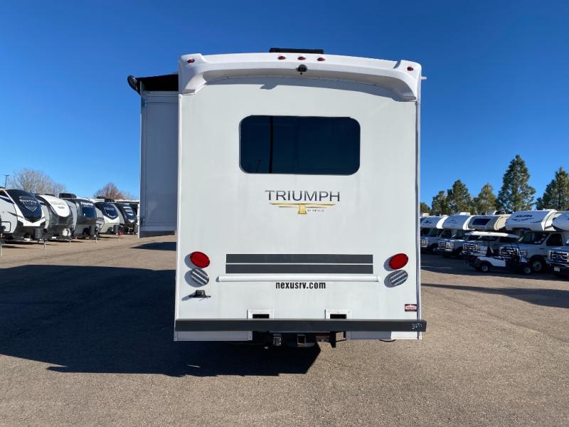 With any Triumph Class C gas motorhome by Nexus you will appreciate the Onan generator, rear back-up camera, and the electric awning with LED lighting that makes traveling and be away from home a little easier. Each model features upgraded lino flooring, window treatments, and a stainless steel sink to provide that extra touch-of home. These models also include a 40" TV in the living room and a Wineguard 360 antenna for all your entertainment needs.