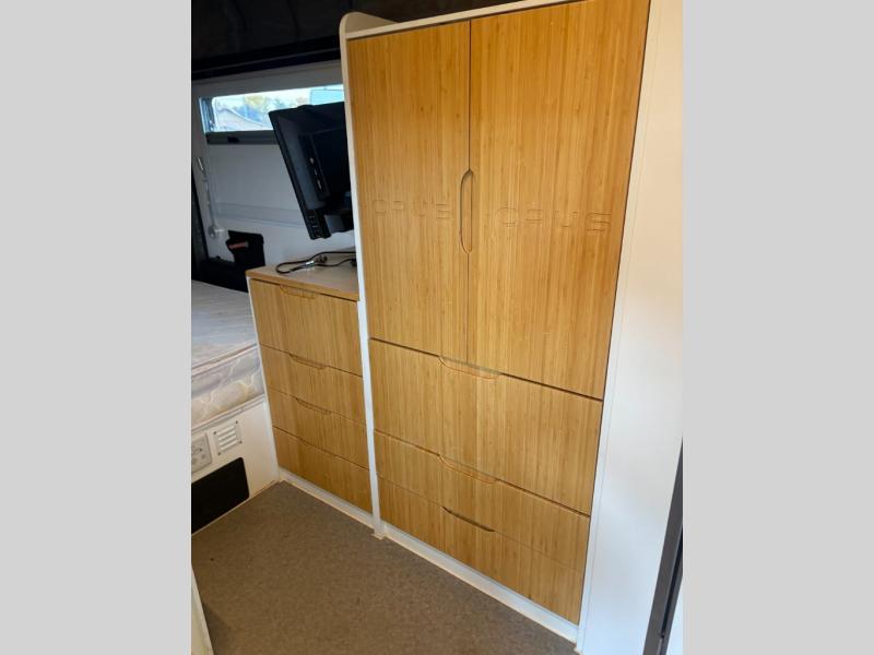 With this OPUS travel trailer, you will enjoy the luxurious interior cabin including leatherette dining, a full-size bamboo wardrobe, and a shower/toilet combo to freshen up after exploring outside. Stay cool or warm with the Truma heater and hot water system and the 13,500 BTU air conditioner as you sleep on the king-size bed, the bunk beds, or the lounge which will sleep one more. The cook can make breakfast on the exterior stainless steel kitchen slide with a four-burner stovetop, a stainless steel chopping board, plus more. And the 12V refrigerator will keep your leftovers and drinks cool. There is storage inside for your clothing and such as well as outside for your outdoor gear, and the expanding roof is a bonus feature for more head room.