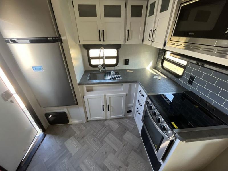 Can you picture yourself cooking in the rear kitchen or relaxing with other campers in the living area on chilly days? This Puma fifth wheel is perfect for a single person, a couple, or a family of five. The rear kitchen provides a great space to gather around after your daily adventure with the sofa and booth dinette nearby. There is plenty of storage throughout with the many closets, overhead cabinets, and wardrobe. Plus, there is an exterior pass-through storage to keep your camping chairs and outdoor games.