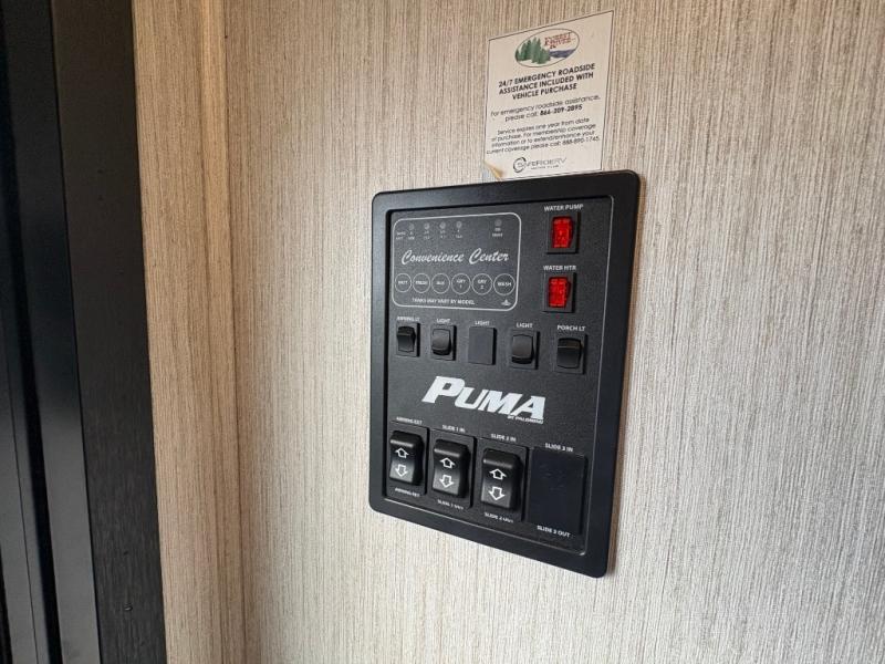 You know it's a great day when it starts with a Palomino Puma travel trailer, fifth wheel, or toy hauler because nothing else is better suited for adventure! There is a Puma for every lifestyle, and there are plenty of features that will enhance each of those lifestyles too. The Puma's construction is better built for lasting performance. The Puma has an AlphaPly roofing membrane, a King HD TV antenna, a smooth, aerodynamic radius front metal with bold exterior graphics, residential-grade carpet with pad on slide outs, and a 5/8" Araucoply plywood floor decking. The Puma also comes packed with value since it gives you the features you need while traveling, like an electric awning with LED lights, preparations for WiFi, a Bluetooth stereo, an enclosed underbelly, an outside shower, and exterior speakers. Plus, the roller shades will help you keep the interior dark and private when you need it to be.