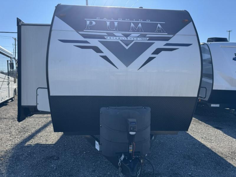 You know it's a great day when it starts with a Palomino Puma travel trailer, fifth wheel, or toy hauler because nothing else is better suited for adventure! There is a Puma for every lifestyle, and there are plenty of features that will enhance each of those lifestyles too. The Puma's construction is better built for lasting performance. The Puma has an AlphaPly roofing membrane, a King HD TV antenna, a smooth, aerodynamic radius front metal with bold exterior graphics, residential-grade carpet with pad on slide outs, and a 5/8" Araucoply plywood floor decking. The Puma also comes packed with value since it gives you the features you need while traveling, like an electric awning with LED lights, preparations for WiFi, a Bluetooth stereo, an enclosed underbelly, an outside shower, and exterior speakers. Plus, the roller shades will help you keep the interior dark and private when you need it to be.
