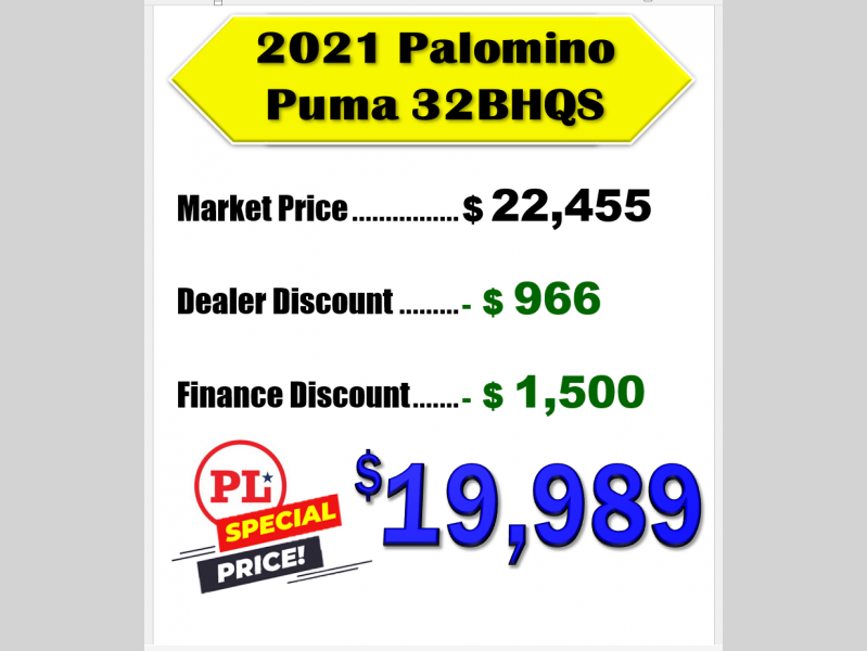 Used 2021 Palomino Puma 32BHQS Travel Trailer