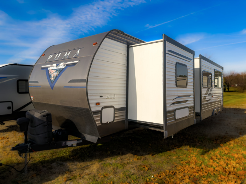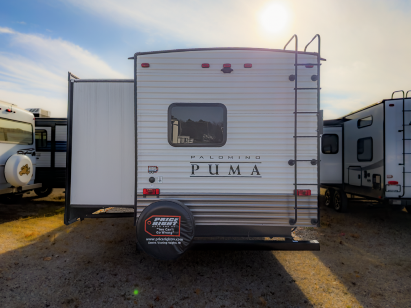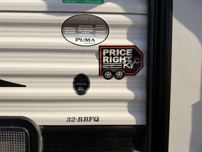 Puma 32RBFQ with dual private bedrooms, residential slideout living, abundant storage, and family-focused Palomino build quality offering strong long-trip value across Michigan.